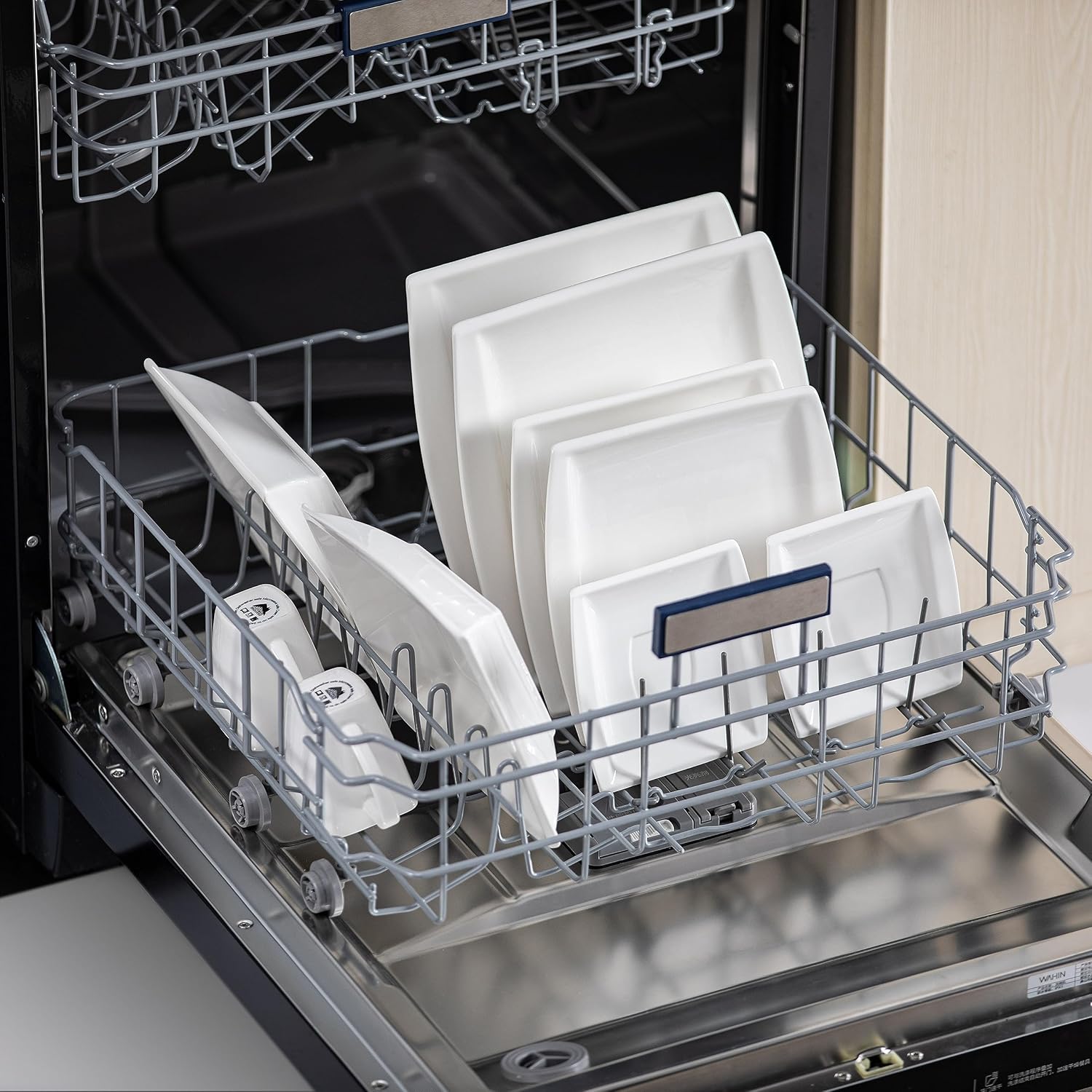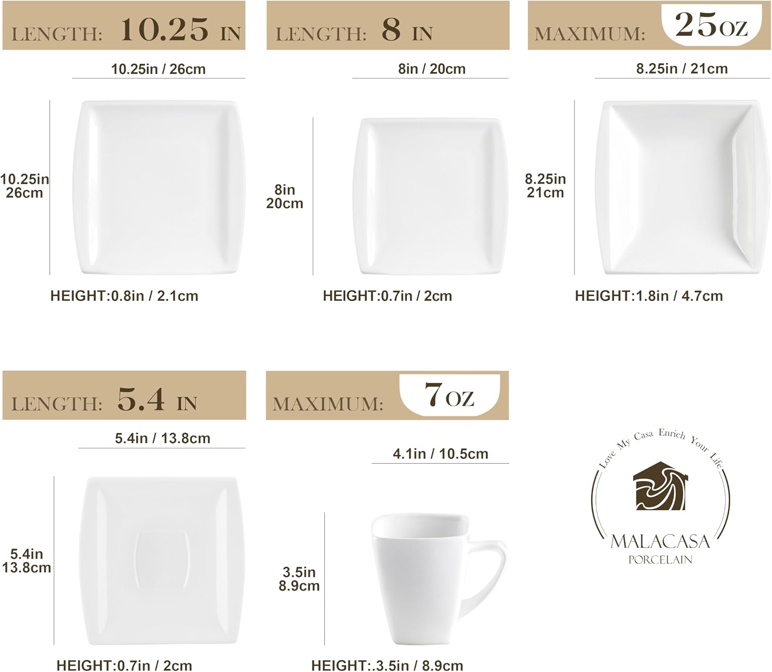 - Modern Aesthetic & Classic Elegance -- Featured with low-profile square design, stylish and simple lines, each plates and bowls are distinct. The simplicity of white dinnerware sets exude an elegant and sophisticated aesthetic, making them suitable for both casual and formal dining settings.
