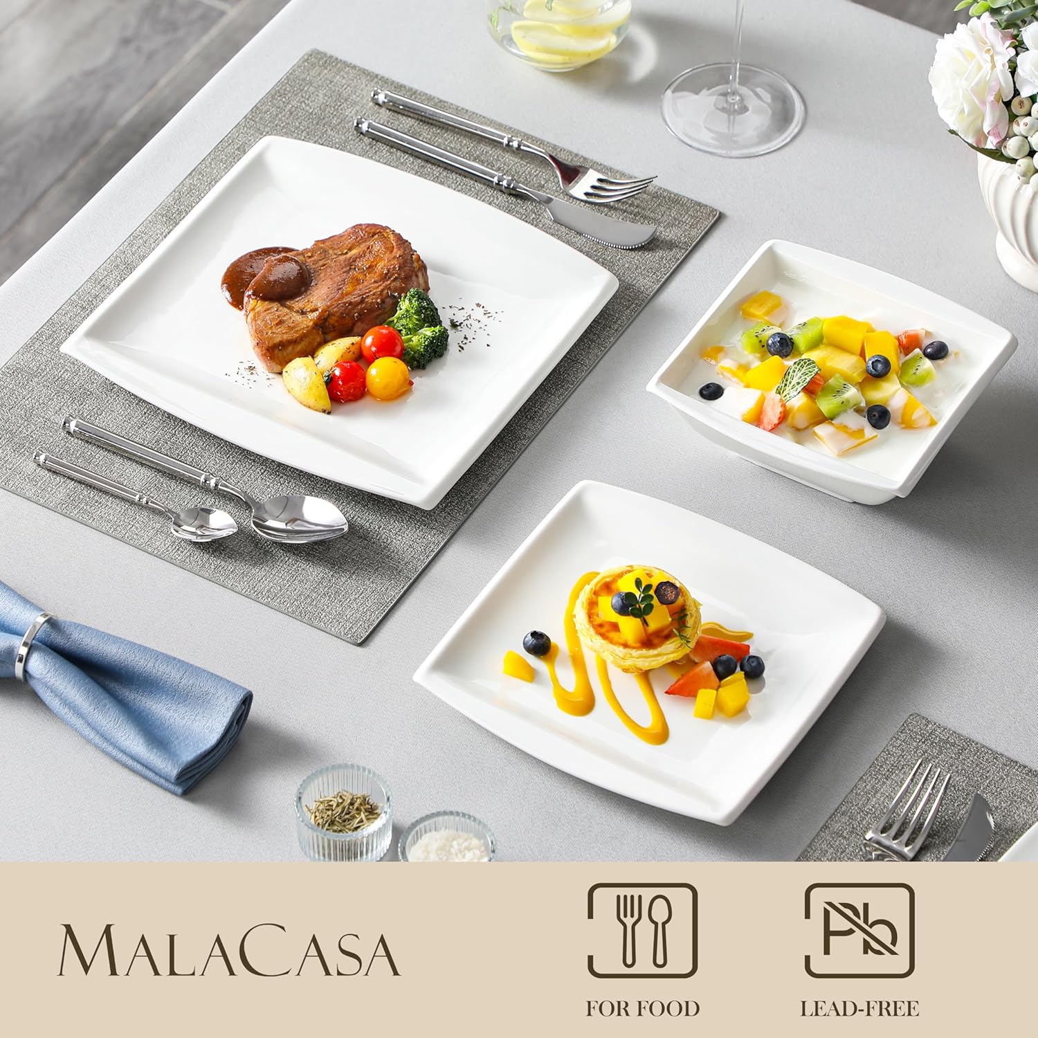 MALACASA Plates and Bowls Sets, Square Dinnerware Sets for 6 (30pcs), Series Blance