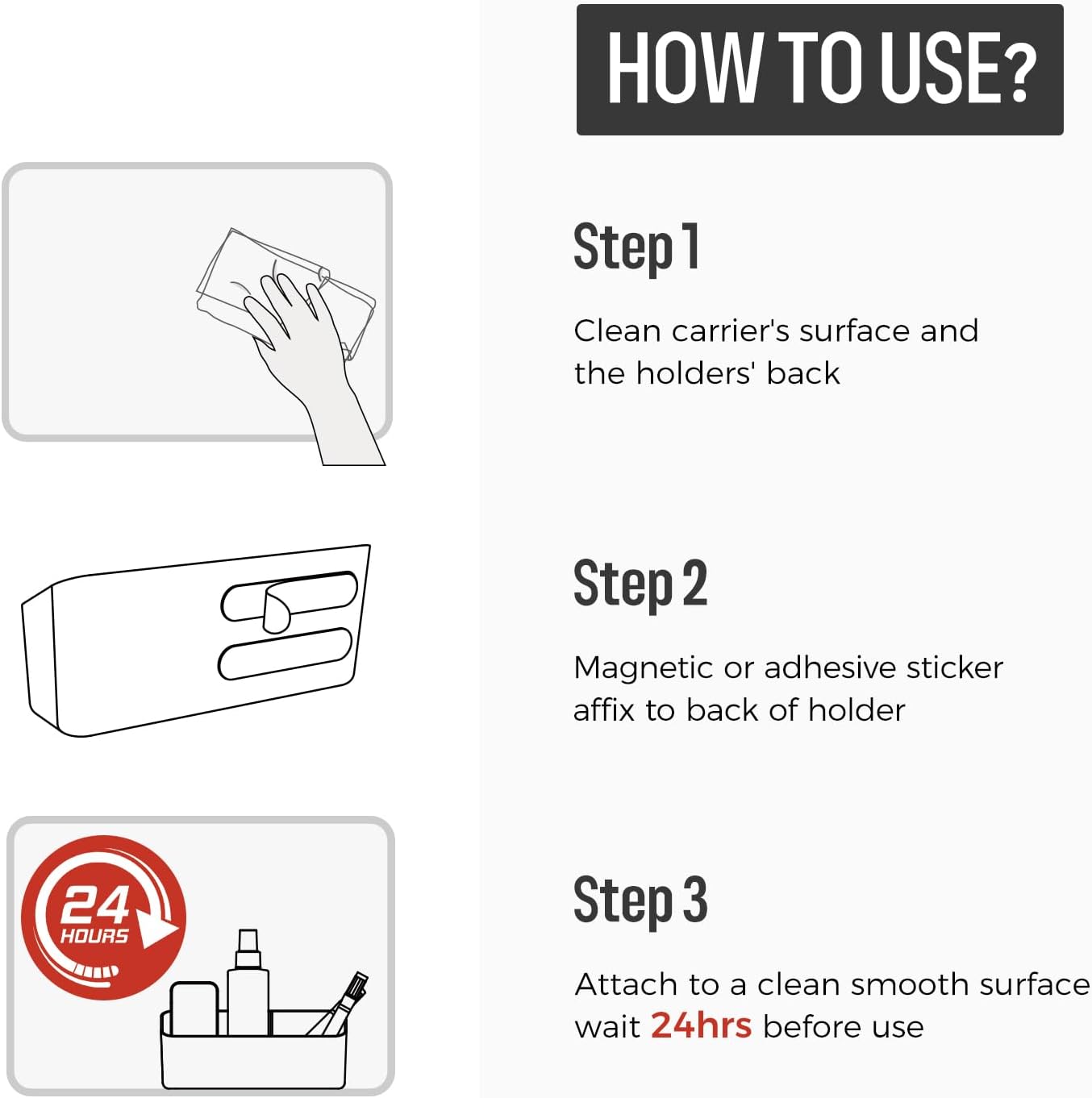 - DUAL AFFIXING DESIGN: Dry erase accessory tray with optional magnetic and adhesive stickers. Easily attaches to magnetic surfaces such as whiteboards and refrigerators with magnetic sticker and various nonmagnetic surfaces with adhesive one, too.