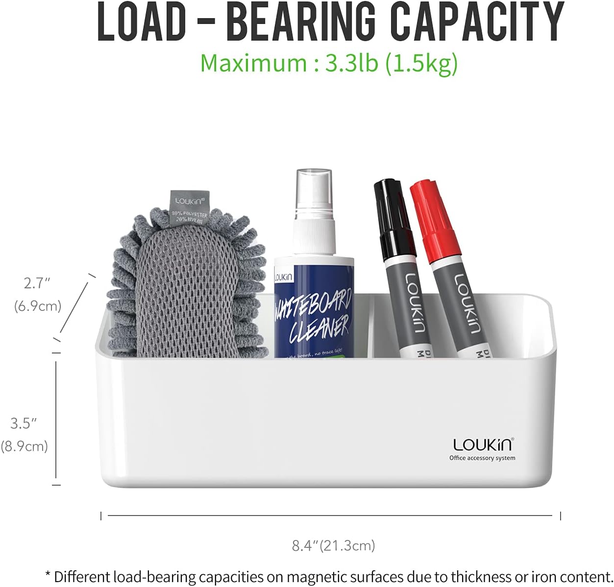- SUPER LOAD BEARING: Secure magnetic storage organizer for whiteboards with a maximum loadbearing of capacity 3.3 lb (1.5 kg).