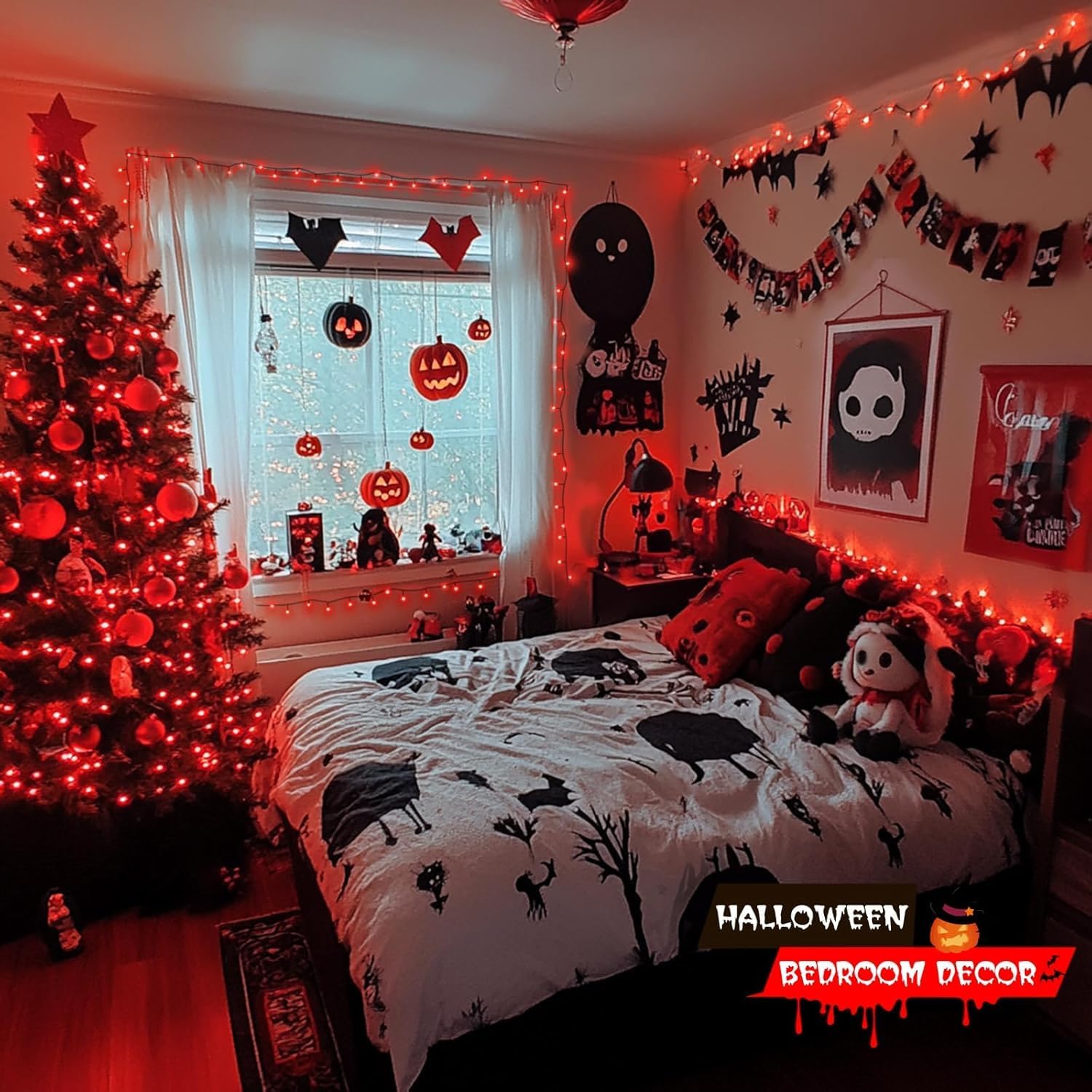 - 【Bright & Soft Halloween Lights】66ft long red lights are bright and not dazzling. In addition, the red LED String light with a plug greatly improves the stability of bulb brightness. Perfect for adding a festival ambiance on Halloween and wonderful for indoor and outdoor use.