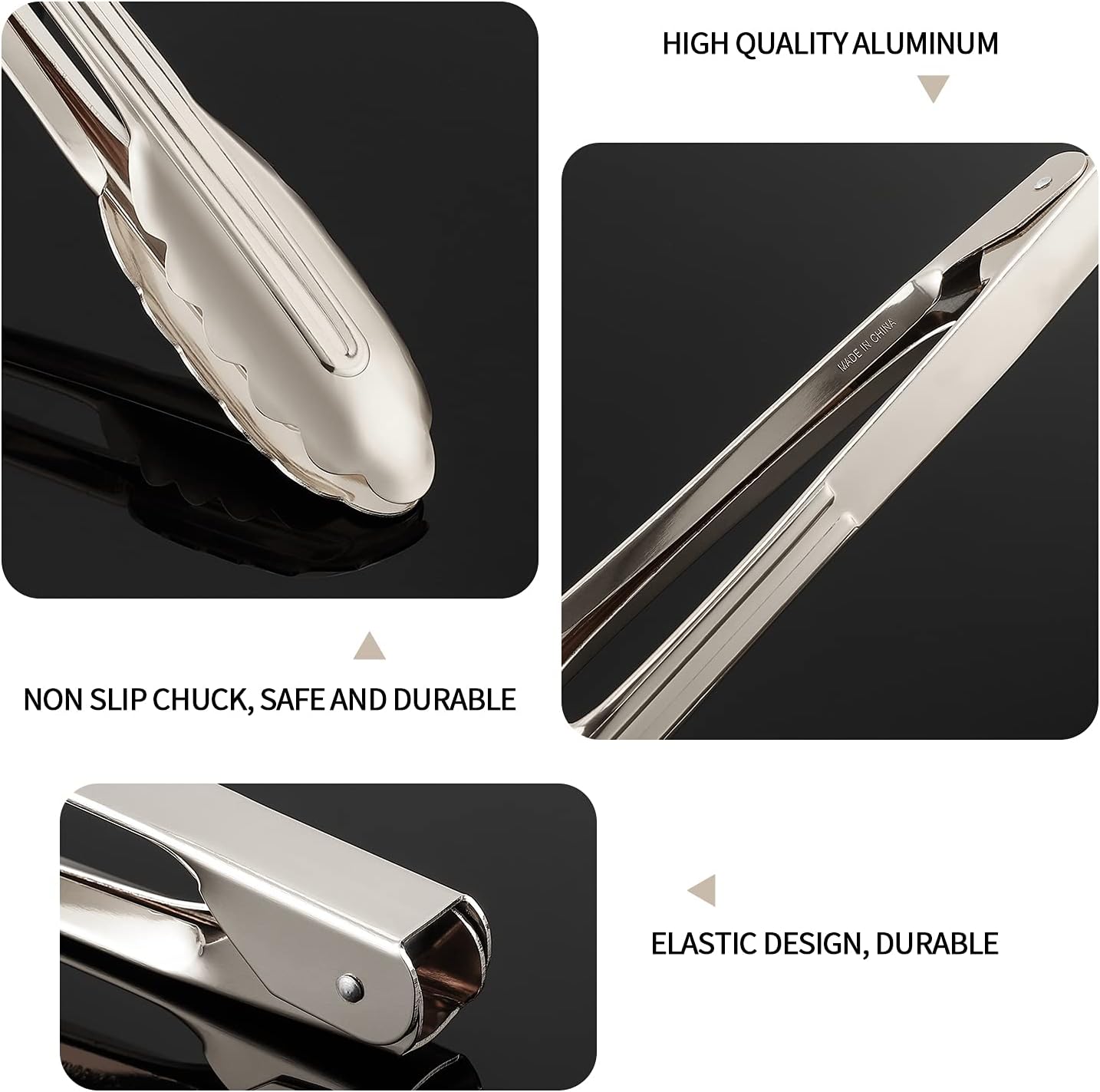 MSY BIGSUNNY 9 Inch Food Tongs for Cooking and Serving- Aluminum Kitchen Utensil - Set of 3 (silver)
