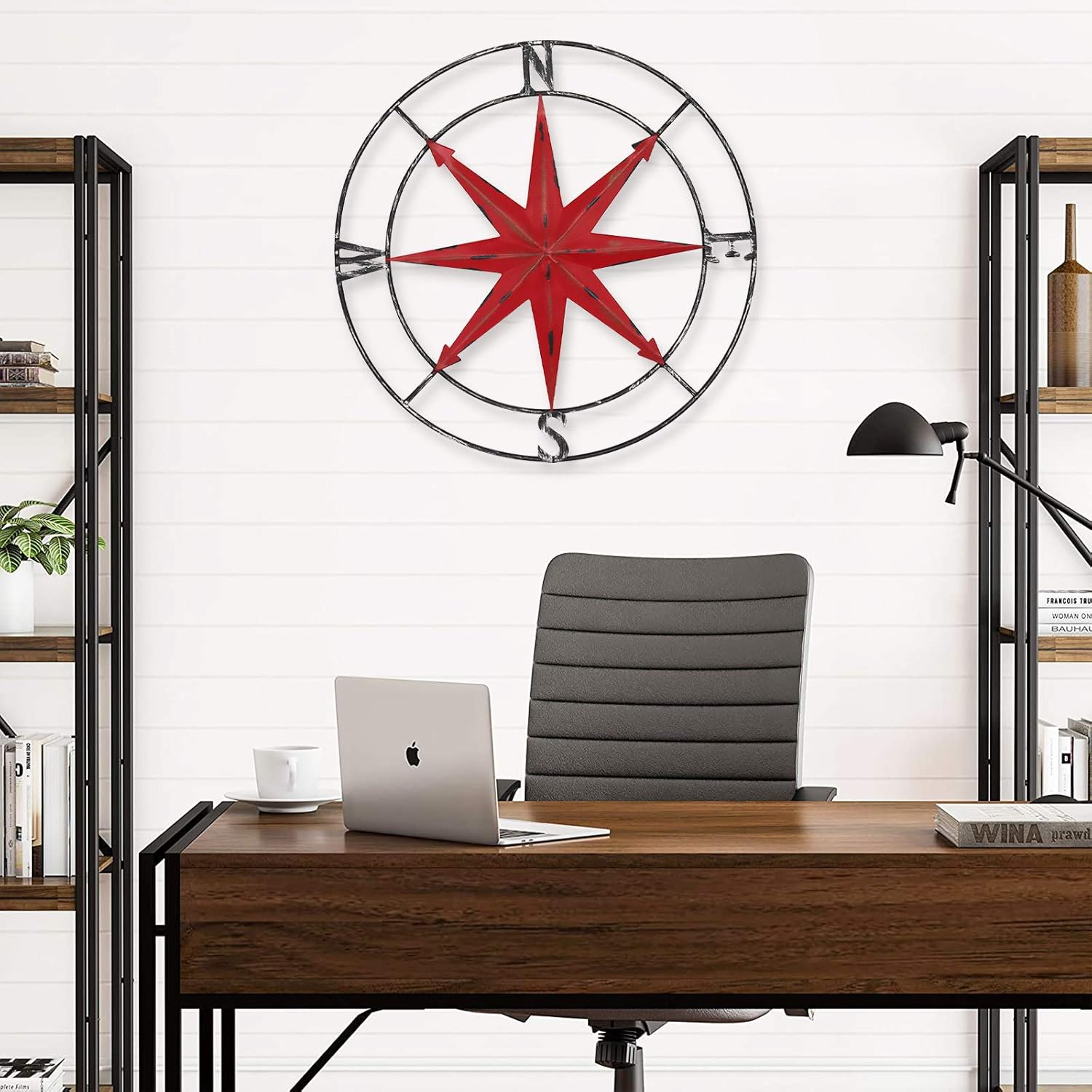 aboxoo Round Metal Compass Decorative Compass Metal Wall Art Hanging Wall Sculpture 11 Inch Diameter Farmhouse Decor Indoor or Outdoor Sign