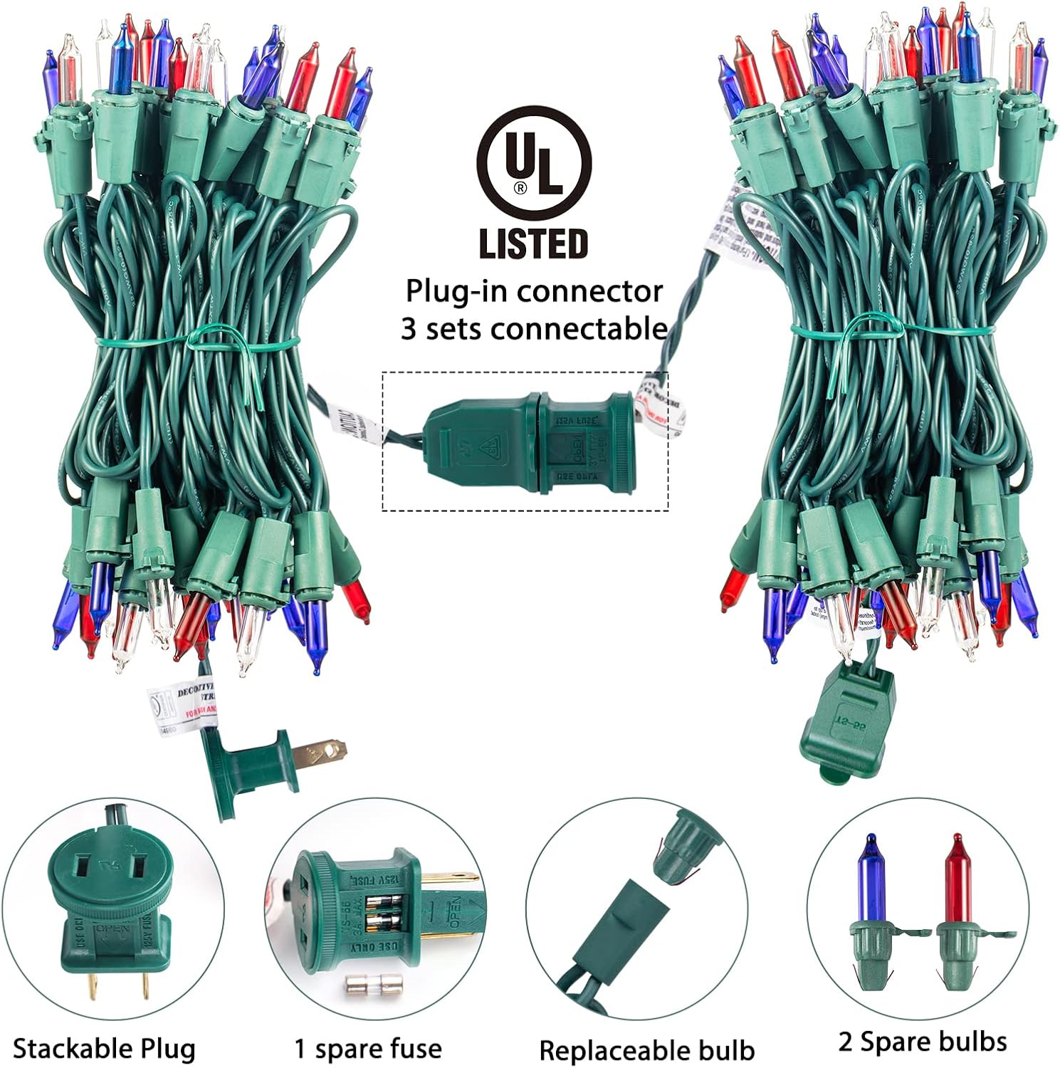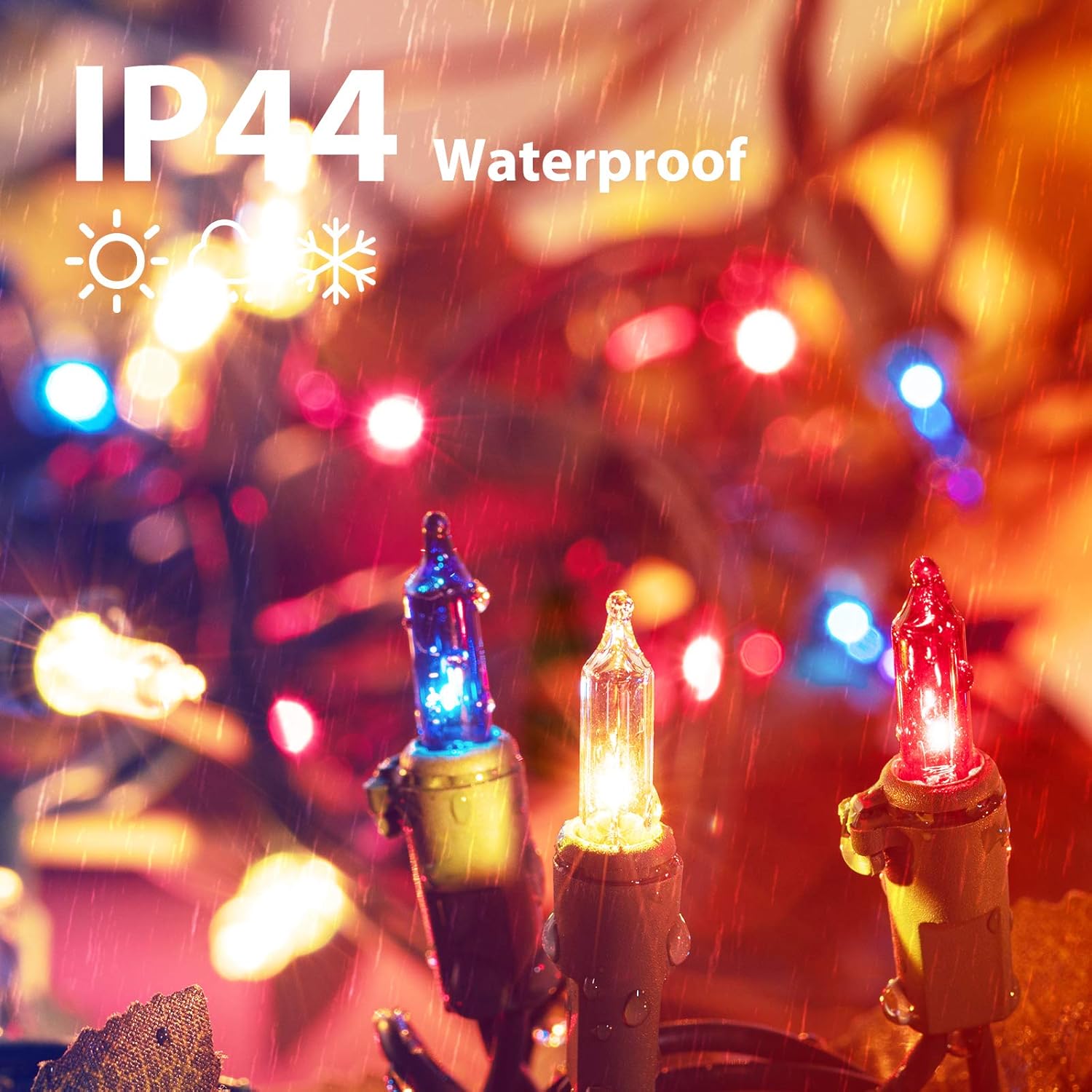- Premium and Safe: The christmas lights are made of great material and superb craftsmanship, built in fuses, universal UL listed certification, IP44 waterproof, can be used safely. These 360º sparkling waterproof string lights can not only provide good lighting effects but also bring a more romantic festive atmosphere, great for indoor and outdoor lighting decoration