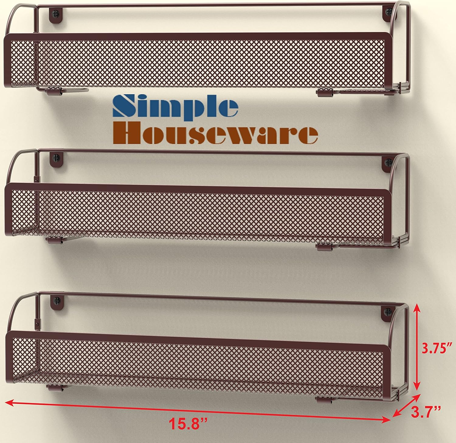 Simple Houseware Wall Mounted Spice Rack Shelves Organizer, Bronze, 3-Pack