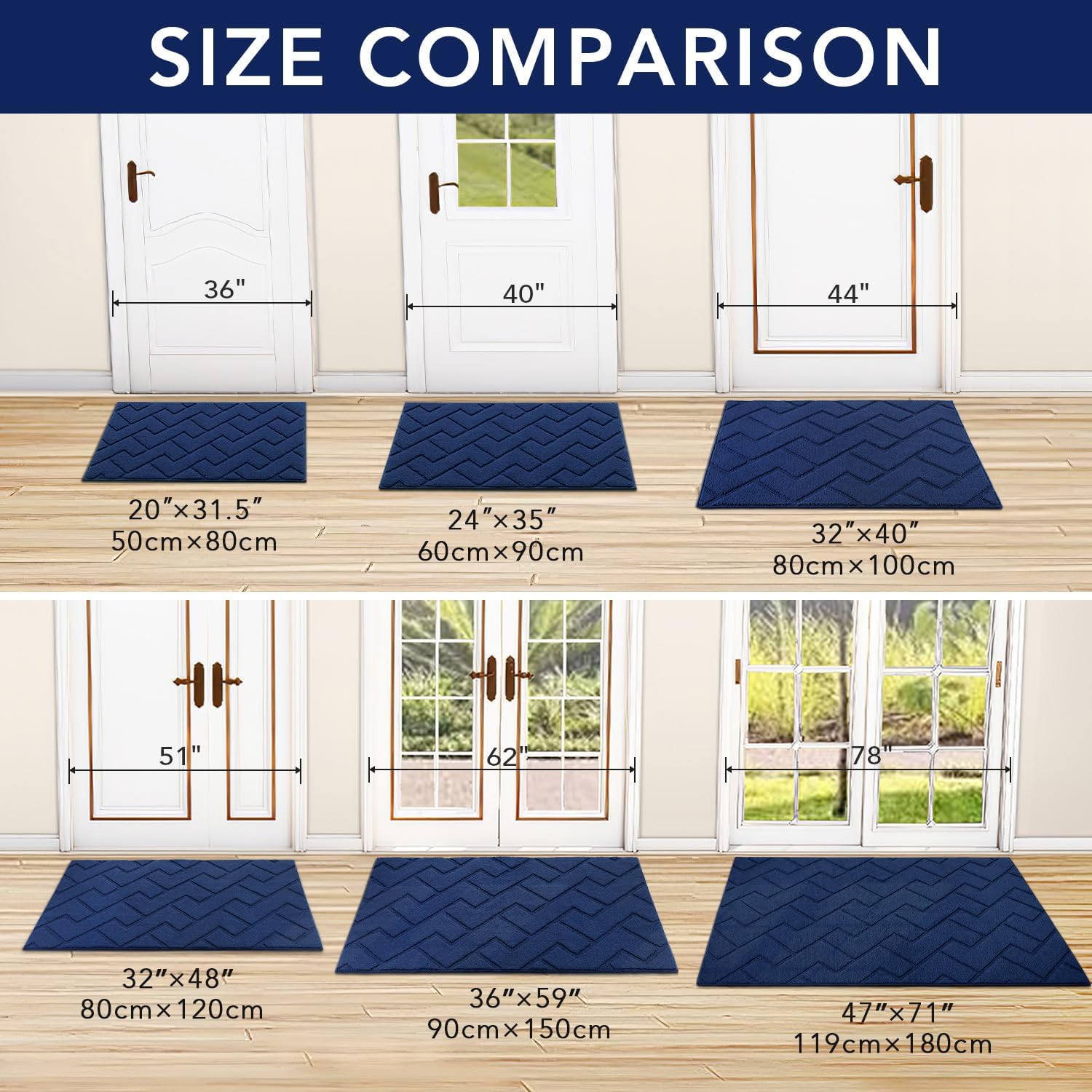 hicorfe Indoor Doormat,Front Back Door Mat Rubber Backing Non Slip Door Mats 24"x35" Absorbent Resist Dirt Entrance Doormat Inside Floor Mats for Entryway Washable Low-Profile (Navy Blue)
