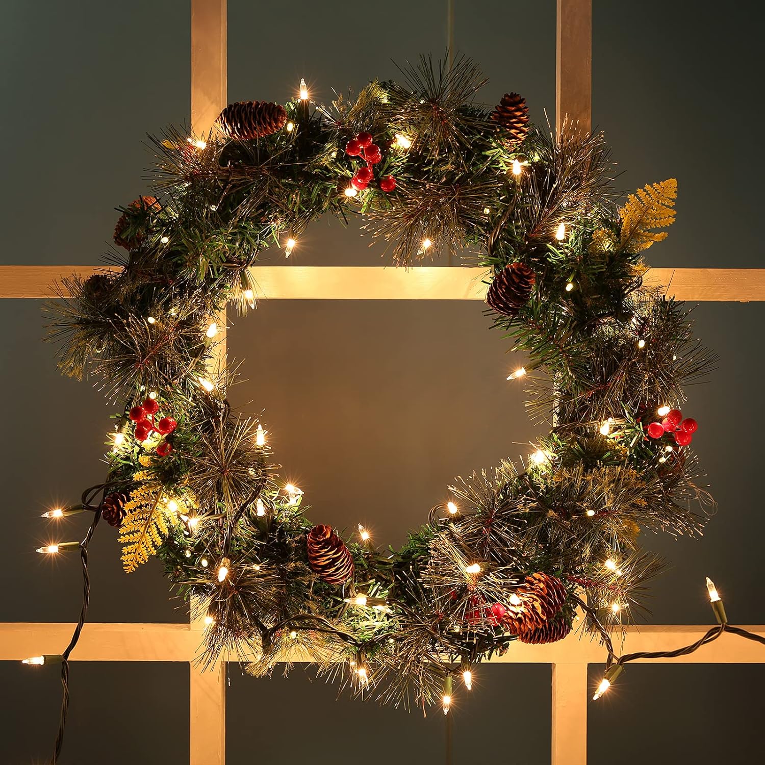 - 🎄 End-to-End Connectable & Easy to Install: Each Christmas string light features a male and a female safe plug, an easy end-to-end connection allows up to 5 strands (125ft in total) connected together to illuminate a wider range. Just hang the string light on wherever you like, power on, you will get a charming night with these bright lights!