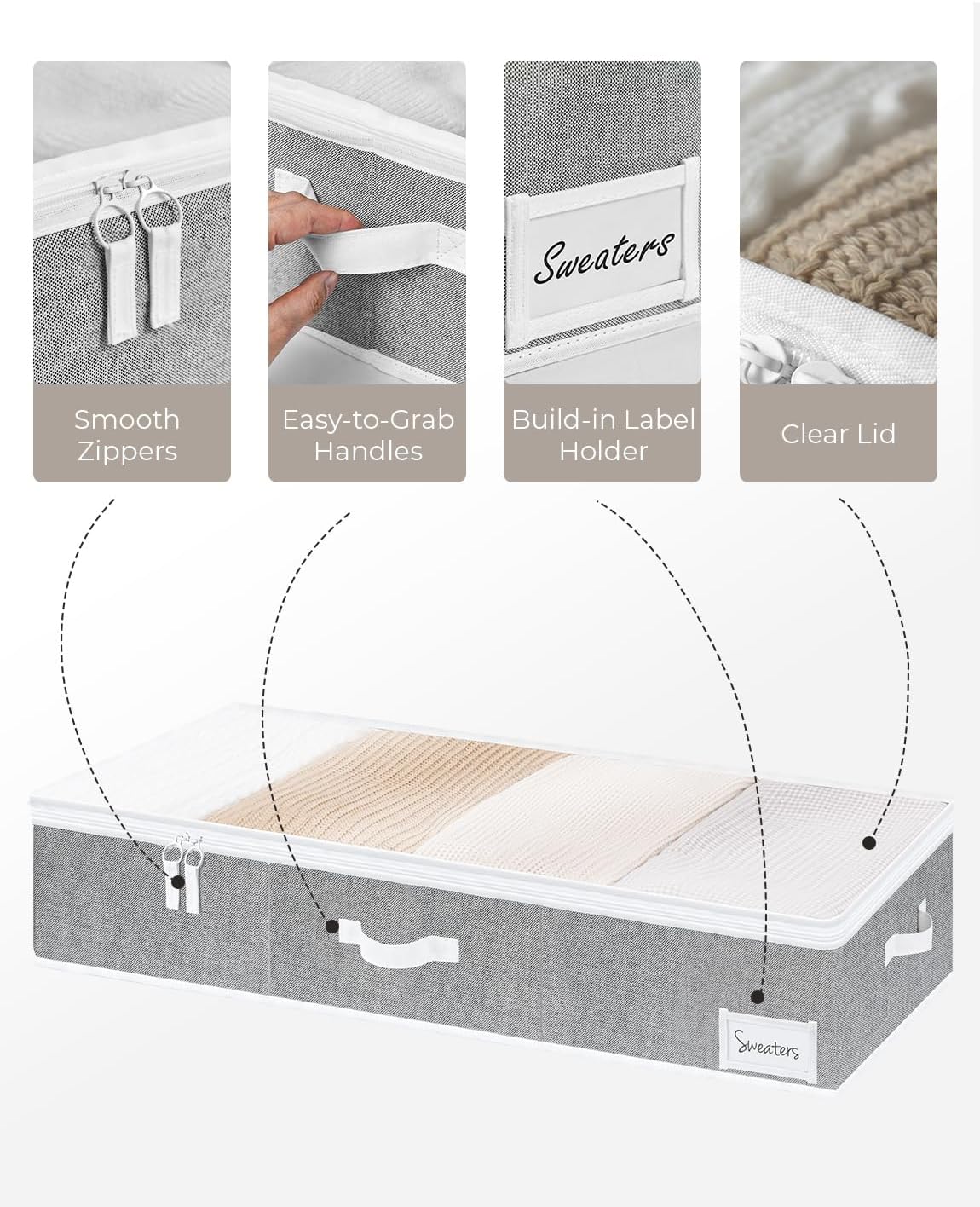 StorageWorks Under Bed Storage Containers with Handles and Label Holder, 2 Pack Ultra-thick Fabric Underbed Bins, Closet Organizer for Clothes, Blankets, Sweater