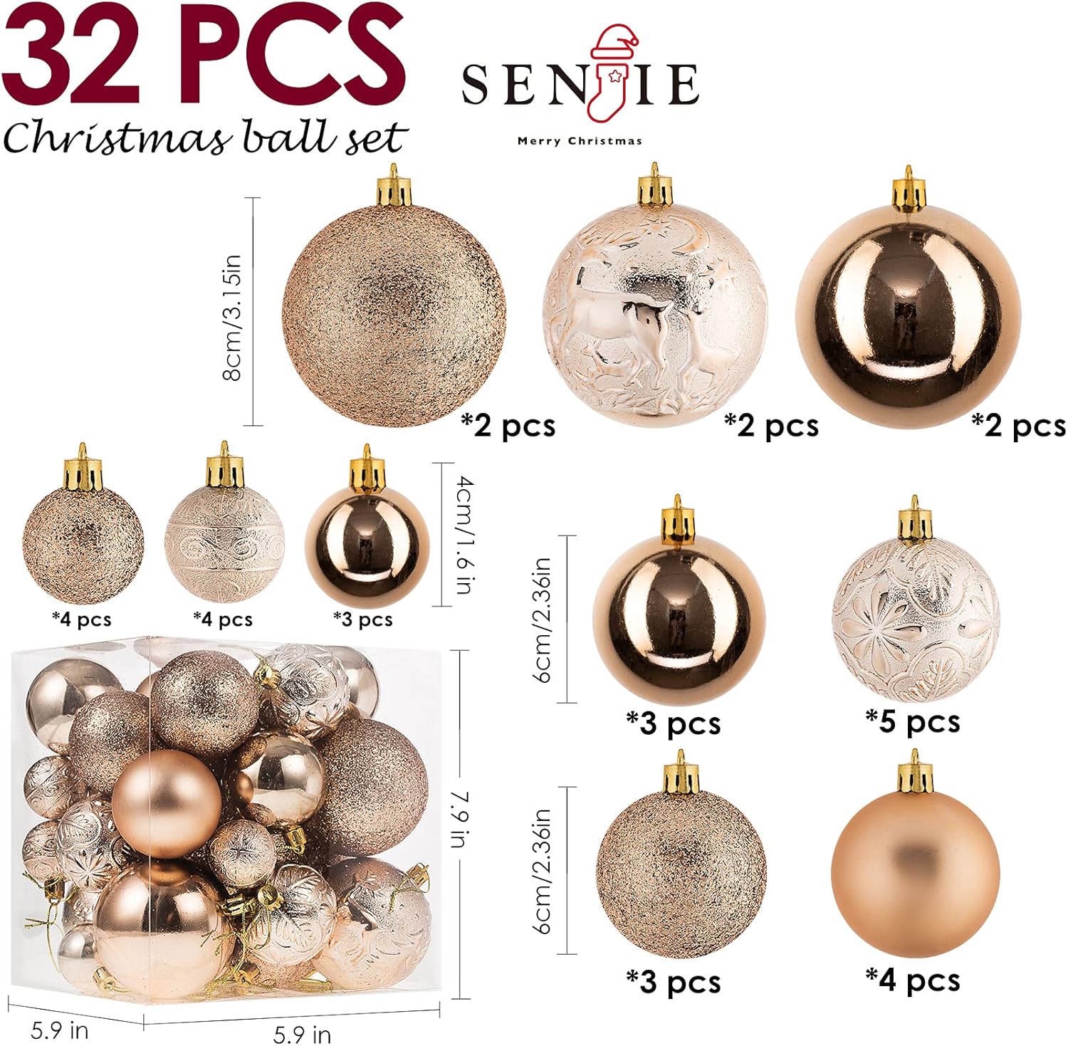 Christmas Ornaments for Xmas Trees,Champagne Shatterproof Christmas Ball Ornaments