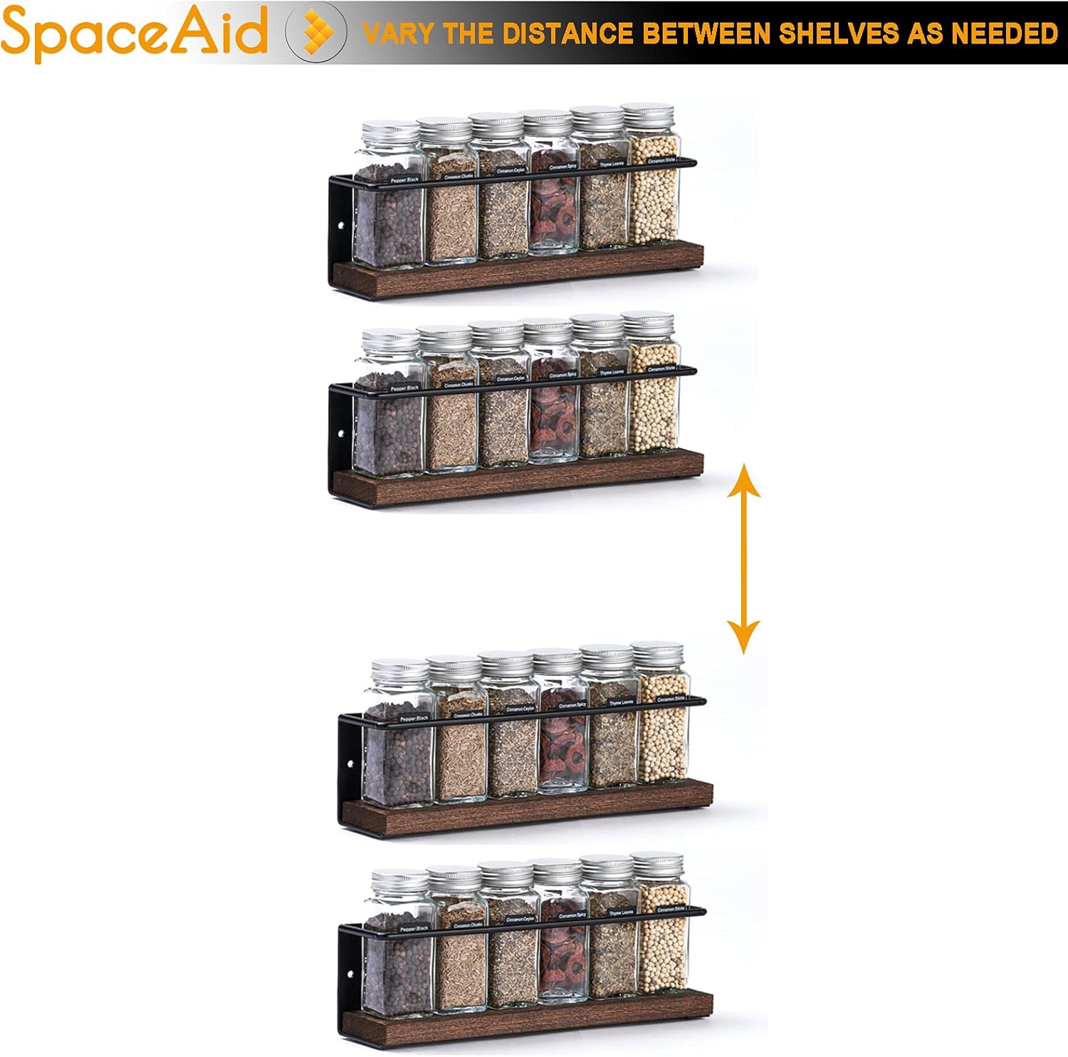 - 4 Single-Tier Spice Holder: Hang the spices organizer together or individually and adjust the distance freely