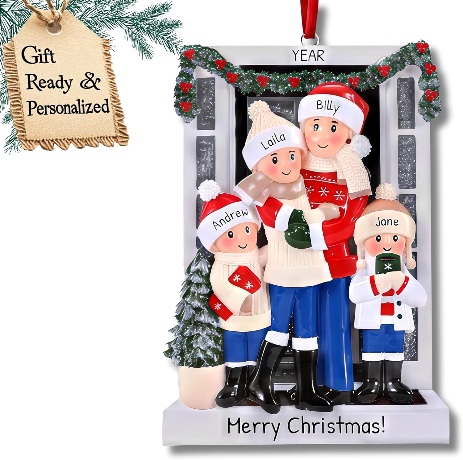 - Cozy Four-Person Design: This family of 4 christmas ornament 2025 captures joyful memories, perfect as a 2025 family christmas ornament for decorating your tree with love and laughter.