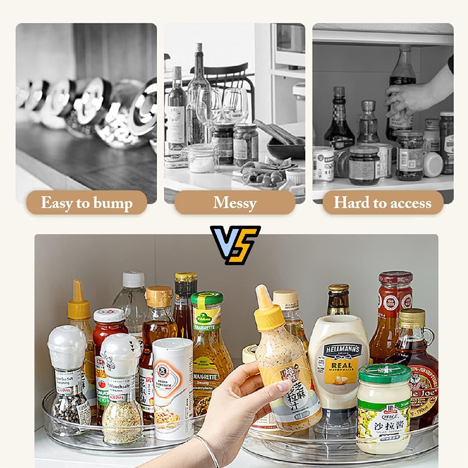 - Large Capacity : Size and capacity meet daily needs, increase turntable capacity, which is convenient to access what you what. The set of 2 transparent 10.5" deep turntable cabinet organizer provides storage and organization for the kitchen, outdoor dining room table, or countertop.
