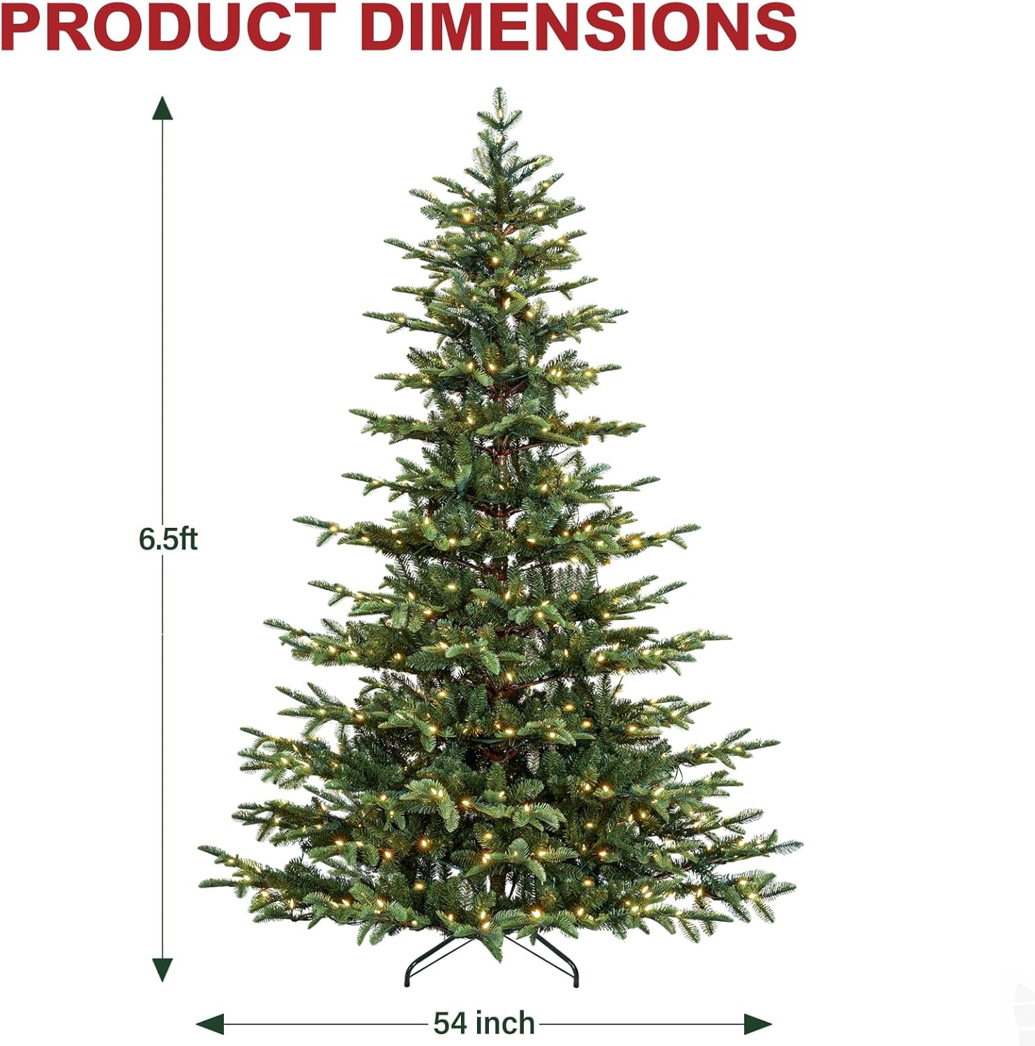 - NATURAL & Full LOOK: Measures 6 feet tall, 54 inches diameter at the base, all metal construction with sturdy folding metal tree stand. Fluffing the typical Christmas tree may take 1 hour the first time, but when fully shaped, for a splendid display.