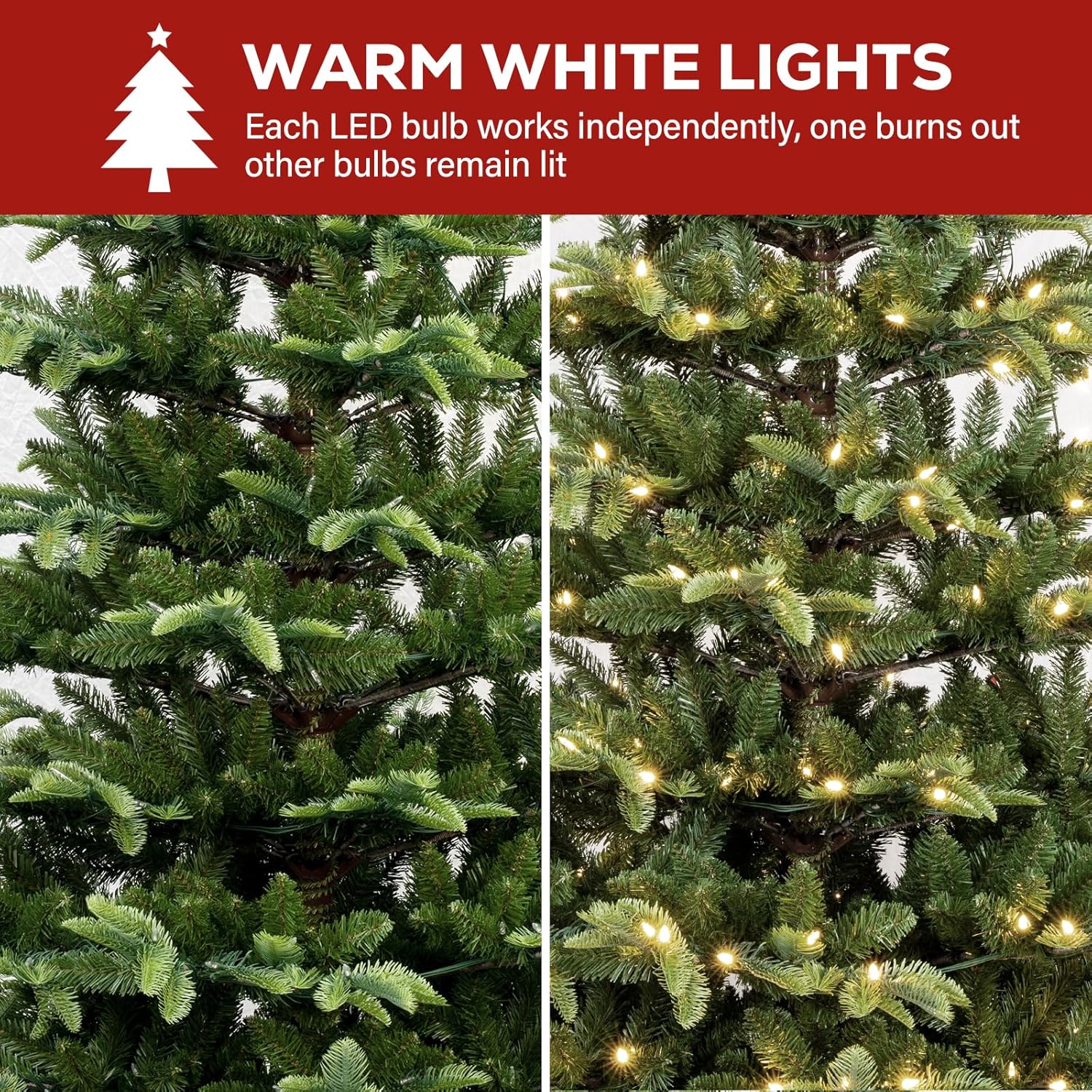 - HIGH QUALITY MATERIALS: Made with metal hinges, sturdy metal tree stand, non-flammable PVC branches and UL Listed LED bulbs, this 6 ft prelit Christmas tree will bring joy and holiday spirit for years to come. It's the perfect touch for Christmas.