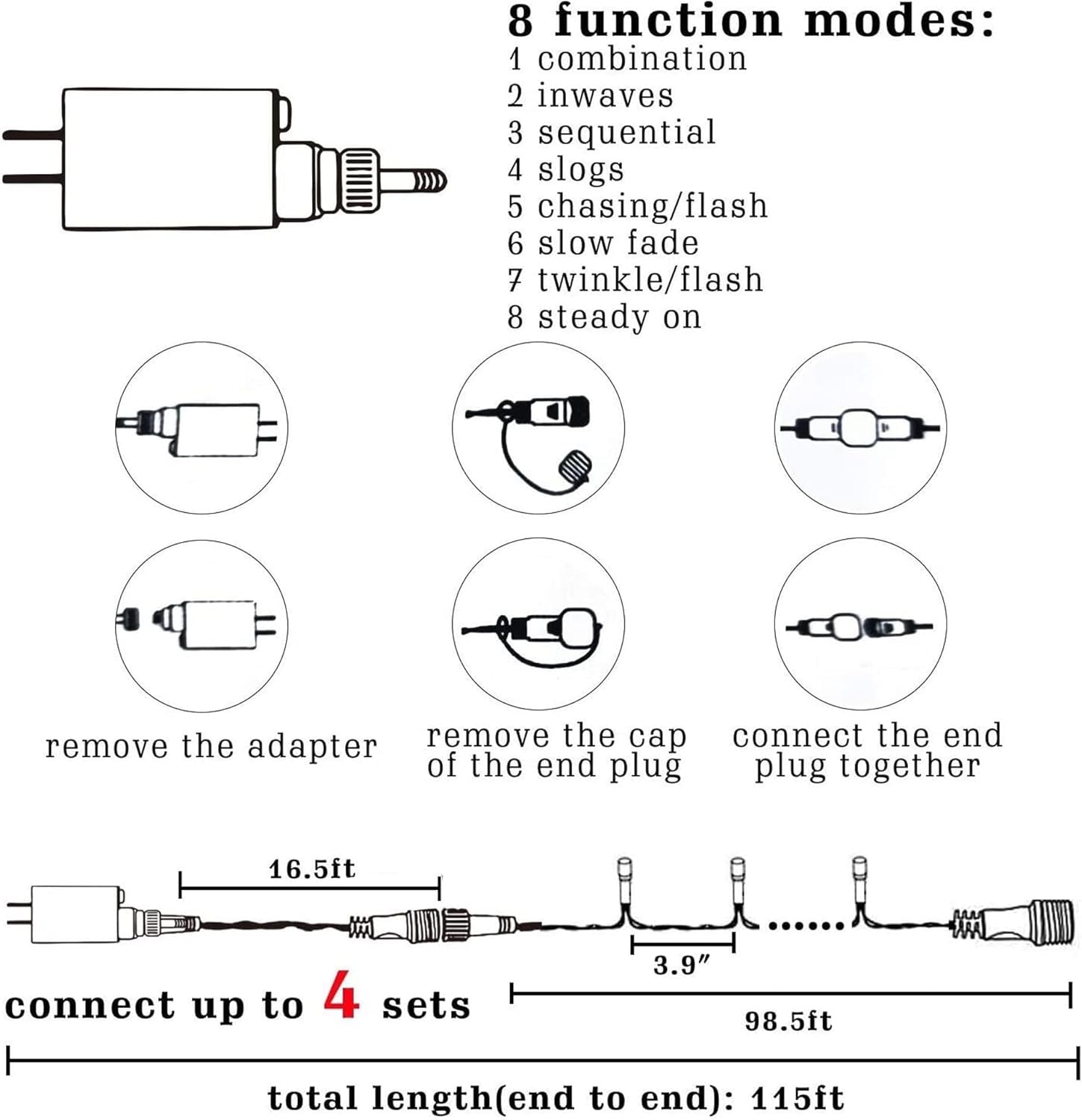 - Connectable: Can connect up to 3 light strings (under 1000 LED), connect according to the size of the scene you need to decorate, to meet the needs of various venue decorations to the greatest extent.