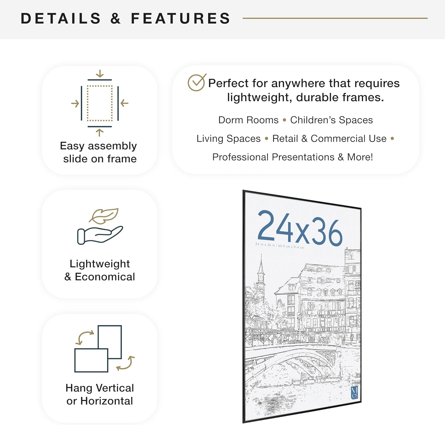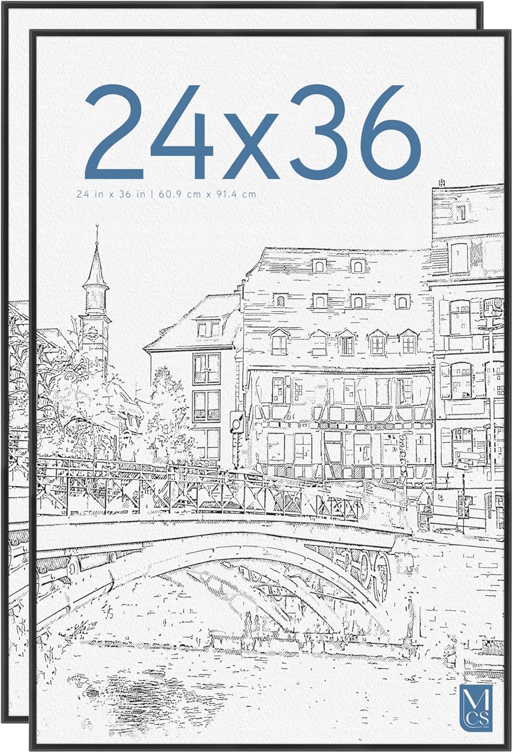 MCS Original Poster Frame 24x36 Black Lightweight Vertical & Horizontal Wall Hanging Large Picture Frame for Posters, Art Prints & Gallery Wall (2-Pack)