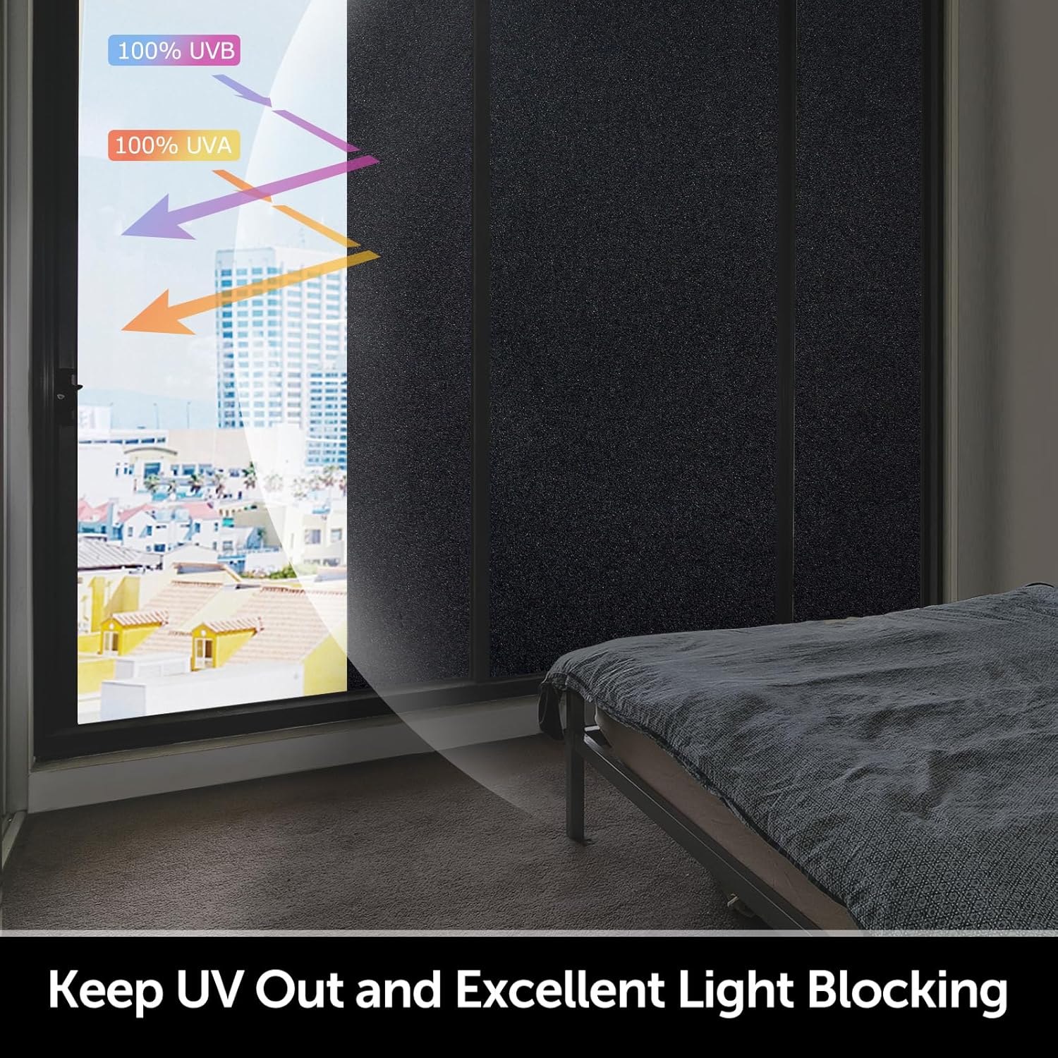 HIDBEA Blackout Window Film,100% Light Blocking Room Darkening Window Privacy Film,Frosted Glass Window Film Heat Control, Removable Window Cover Tint for Day Sleep (Black,35.4in x 6.5ft)