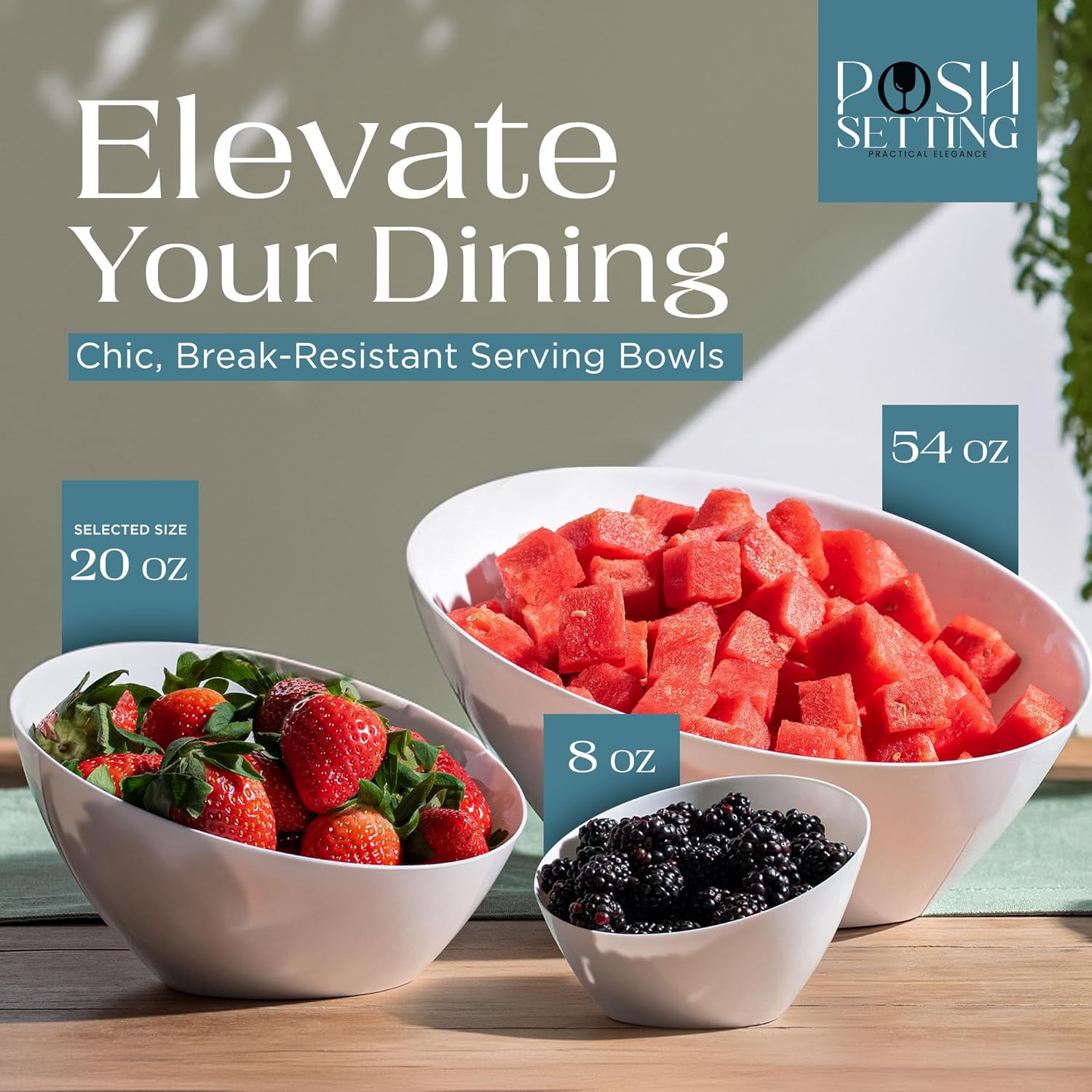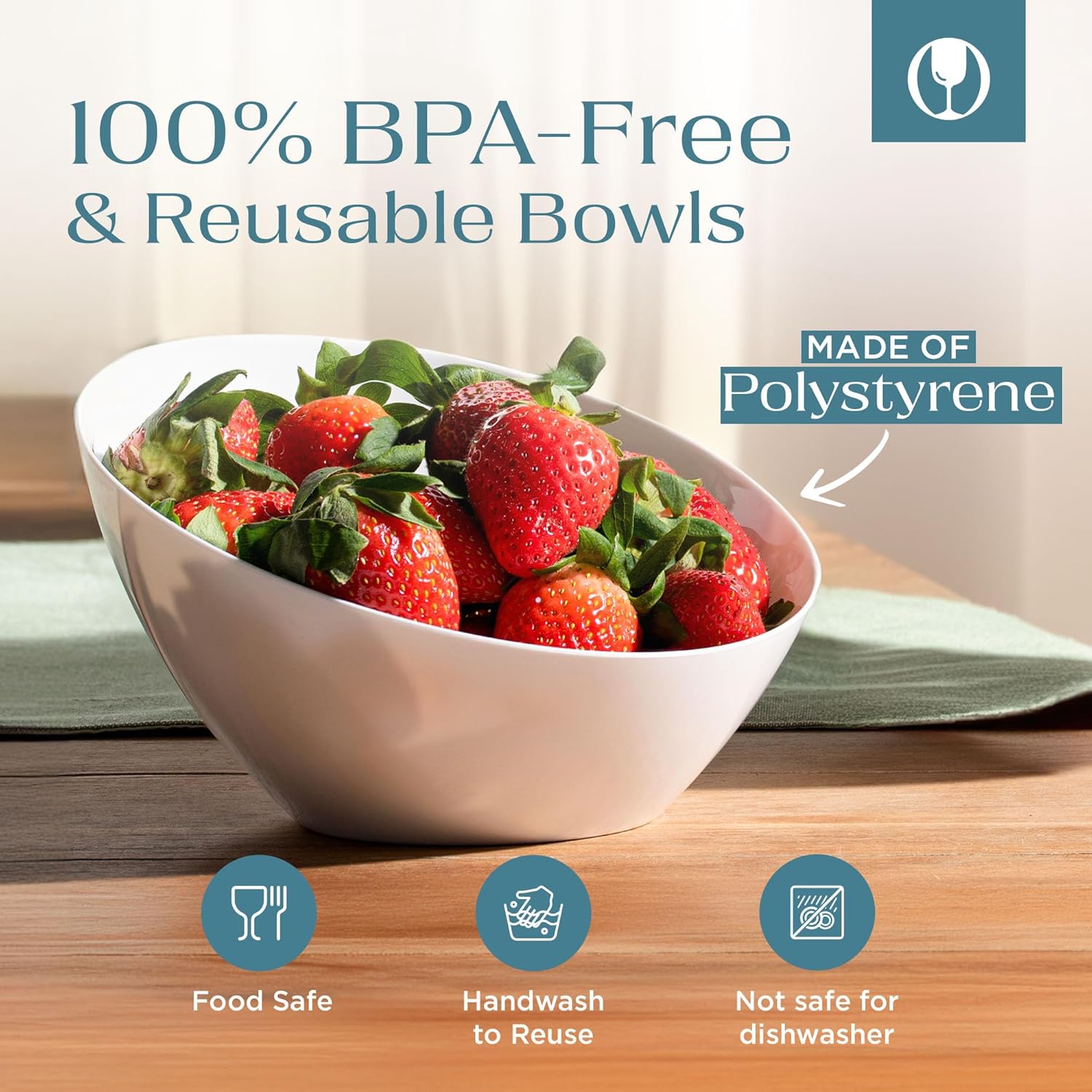 Posh Setting - White Plastic Serving Bowls for Party Angled Bowls Disposable Chip Bowls Candy Bowls for Party Table Salad and Fruit Bowls for Party Wedding Serving Bowls-White, 20 OZ, 5 Pack