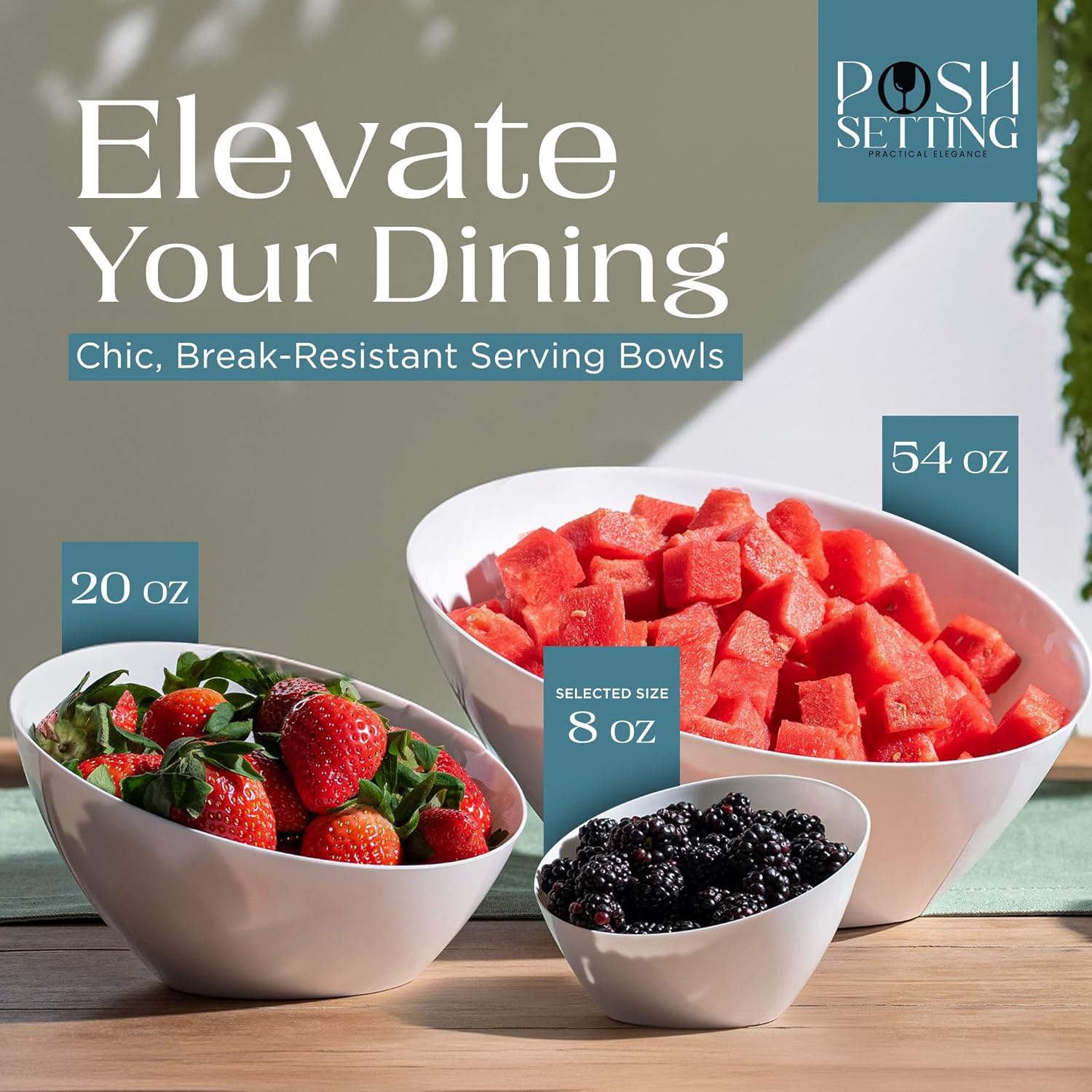 Posh Setting - White Plastic Serving Bowls for Party Angled Bowls Disposable Chip Bowls Candy Bowls for Party Table Salad and Fruit Bowls for Party Wedding Serving Bowls - White, 8 OZ, 5 Pack