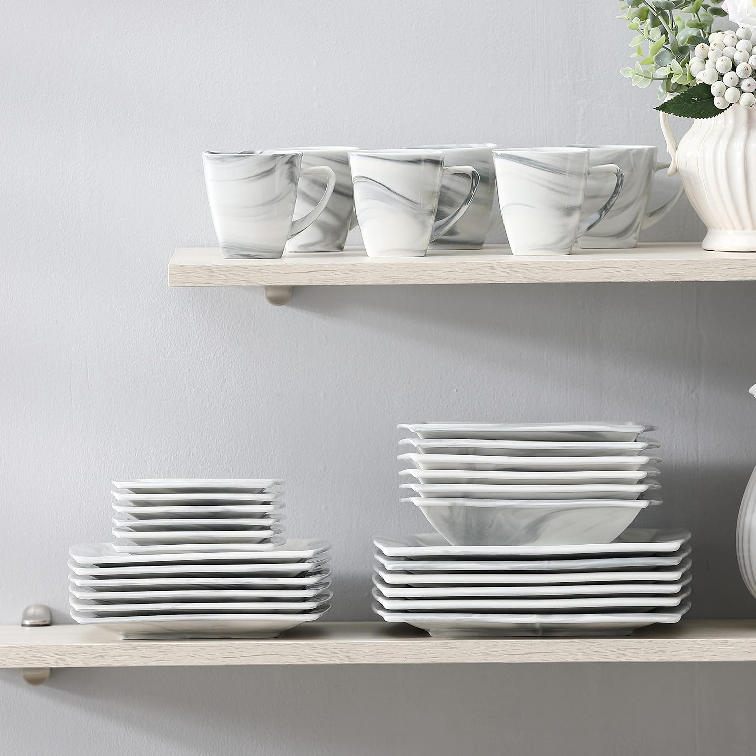 - Stylish & Low Maintenance -- Featured with a low profile square design, and exquisite natural marble lines, each marble dish set are distinct, perfect for any casual or formal dining occasions; Square dinnerware sets are designed to provide the best dining experience while requesting low maintenance, saves you time and effort in upkeep.