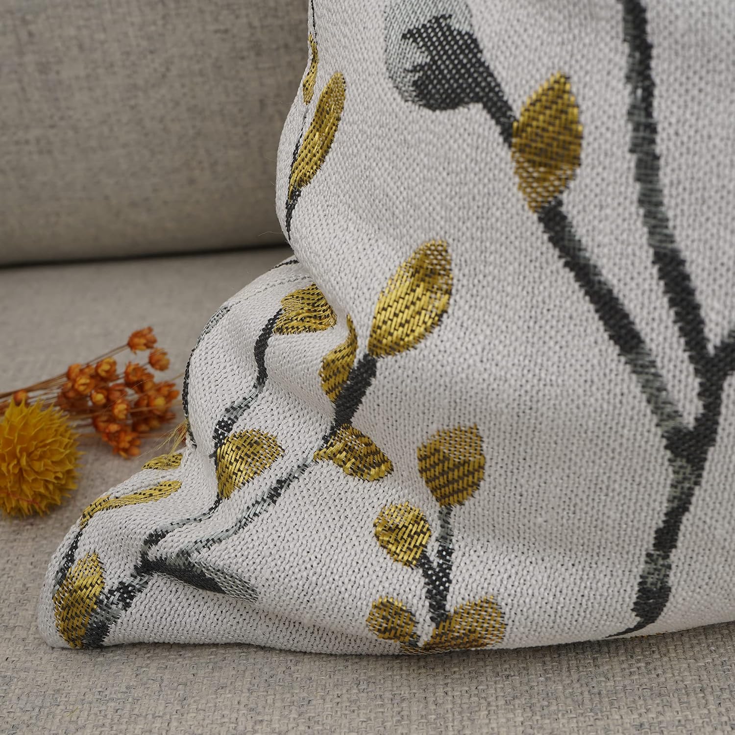 YOUR SMILE Classical Embroidery Jacquard Yellow/Gold Square Decorative Throw Pillow Case Cushion Cover,12x20 inch