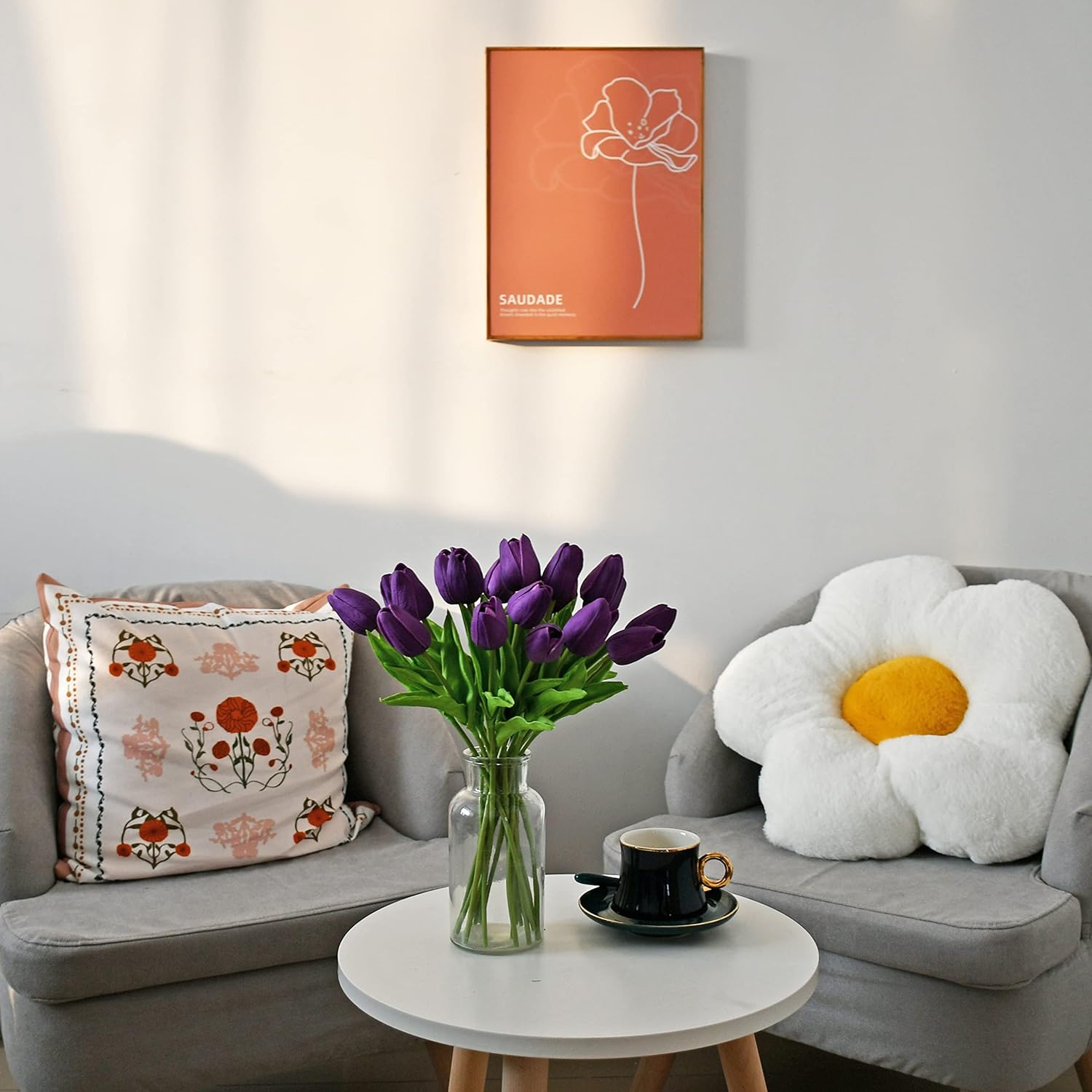 Mandy's Artificial Tulips 20 Stems Dark Purple PU Faux Flowers for Wedding Home Decor 13.5 Inch