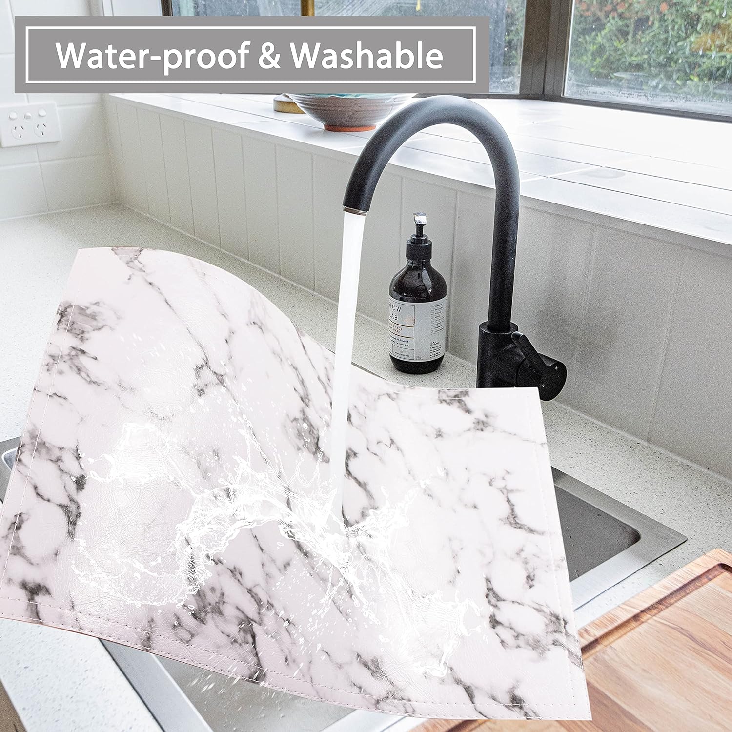 Marble Faux Leather PU Placemats, Set of 6, Easy to Clean, Heat & Stain Resistant for Dining Kitchen Table, Office Conference, Home Decor