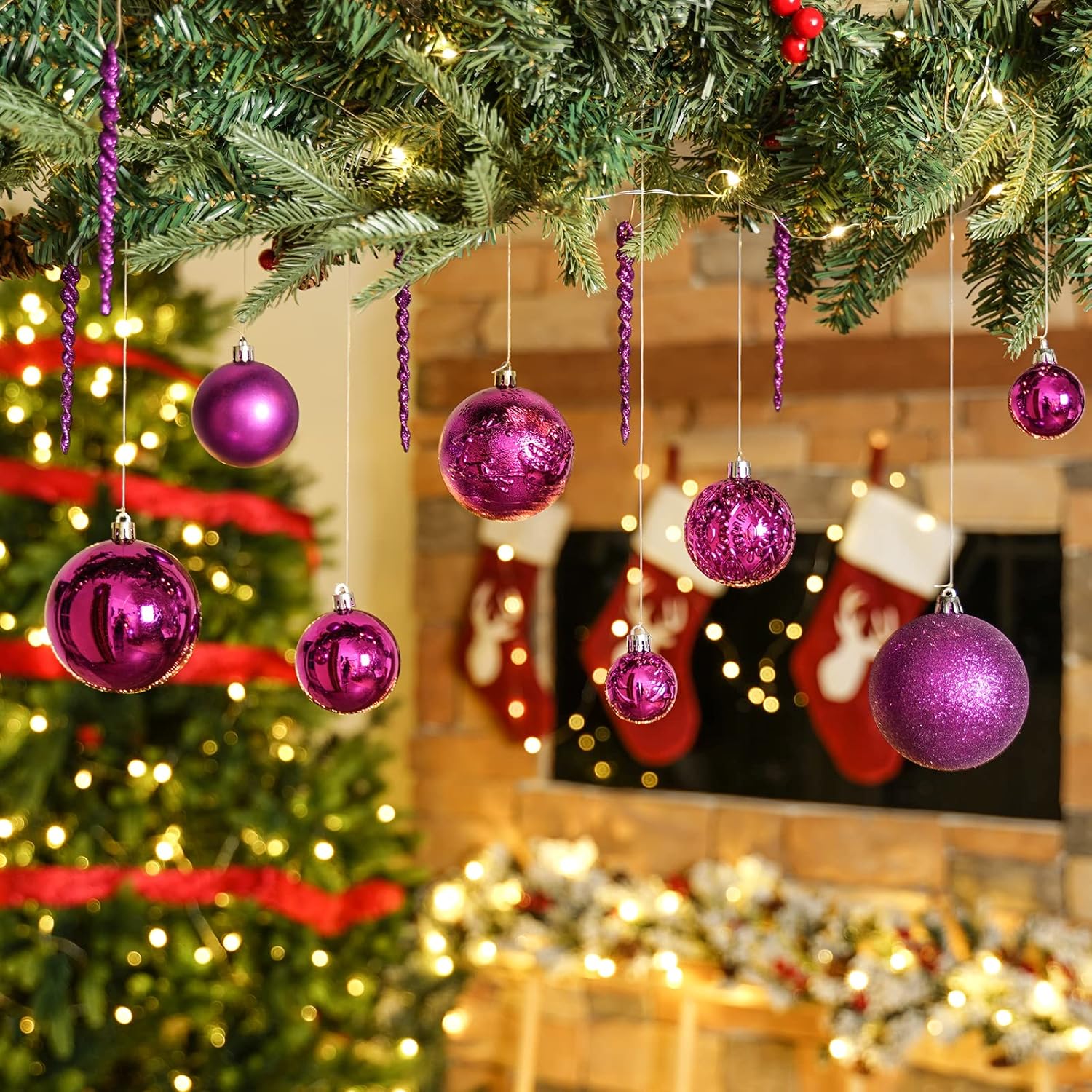 Purple Christmas Ball Ornaments for Christmas Decorations - 45 Pieces Xmas Tree Shatterproof Ornaments with Hanging Loop for Holiday and Party Decoration