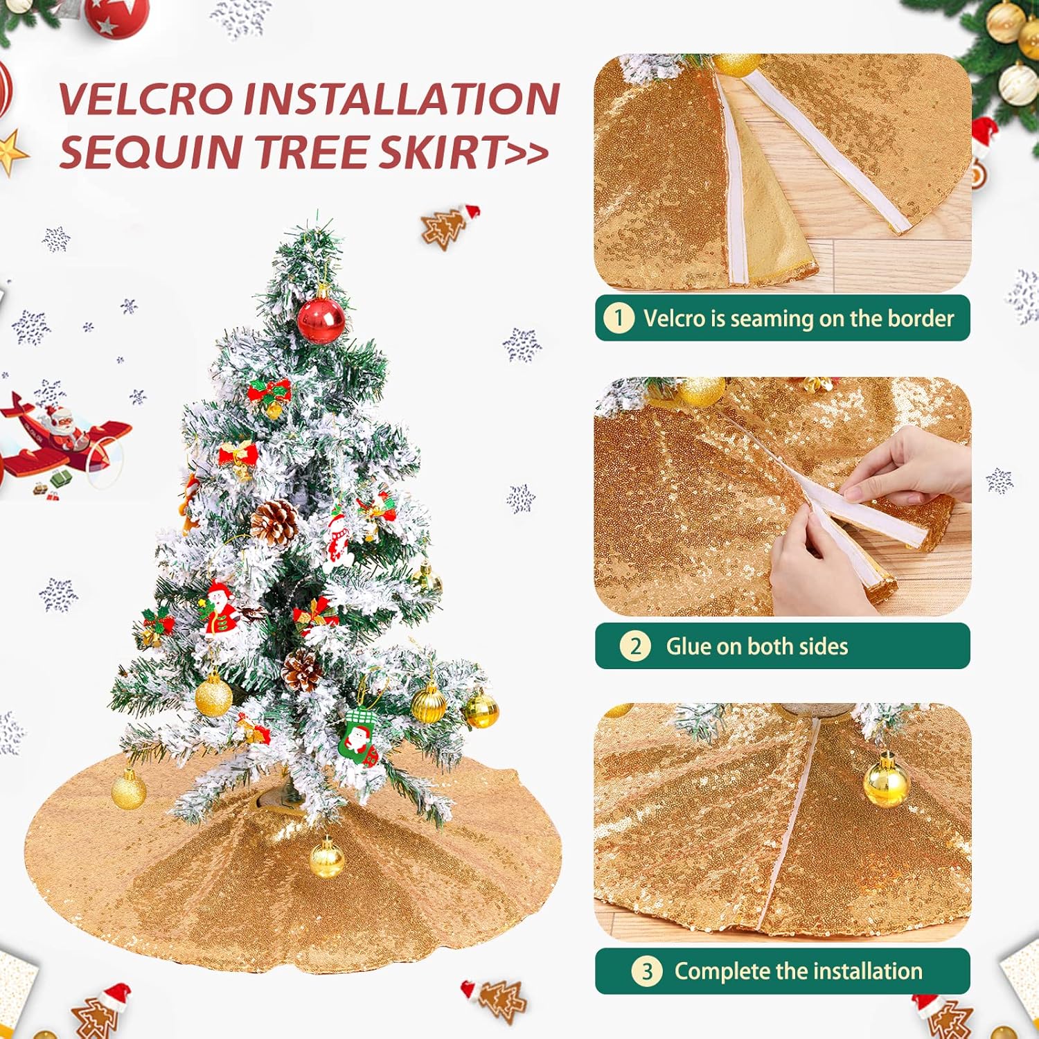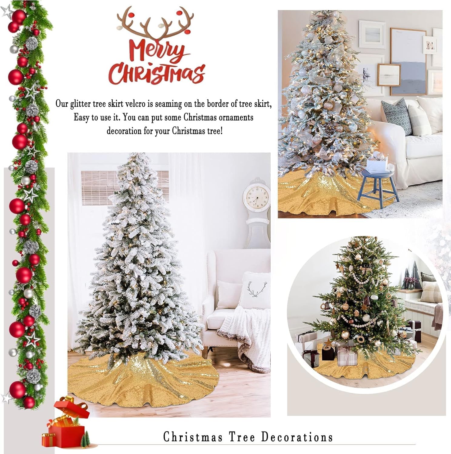 - Easy Installation: Our glitter tree skirt can be installed in seconds, and you can use them to attach a Christmas tree skirt to the base of an artificial or real Christmas tree.