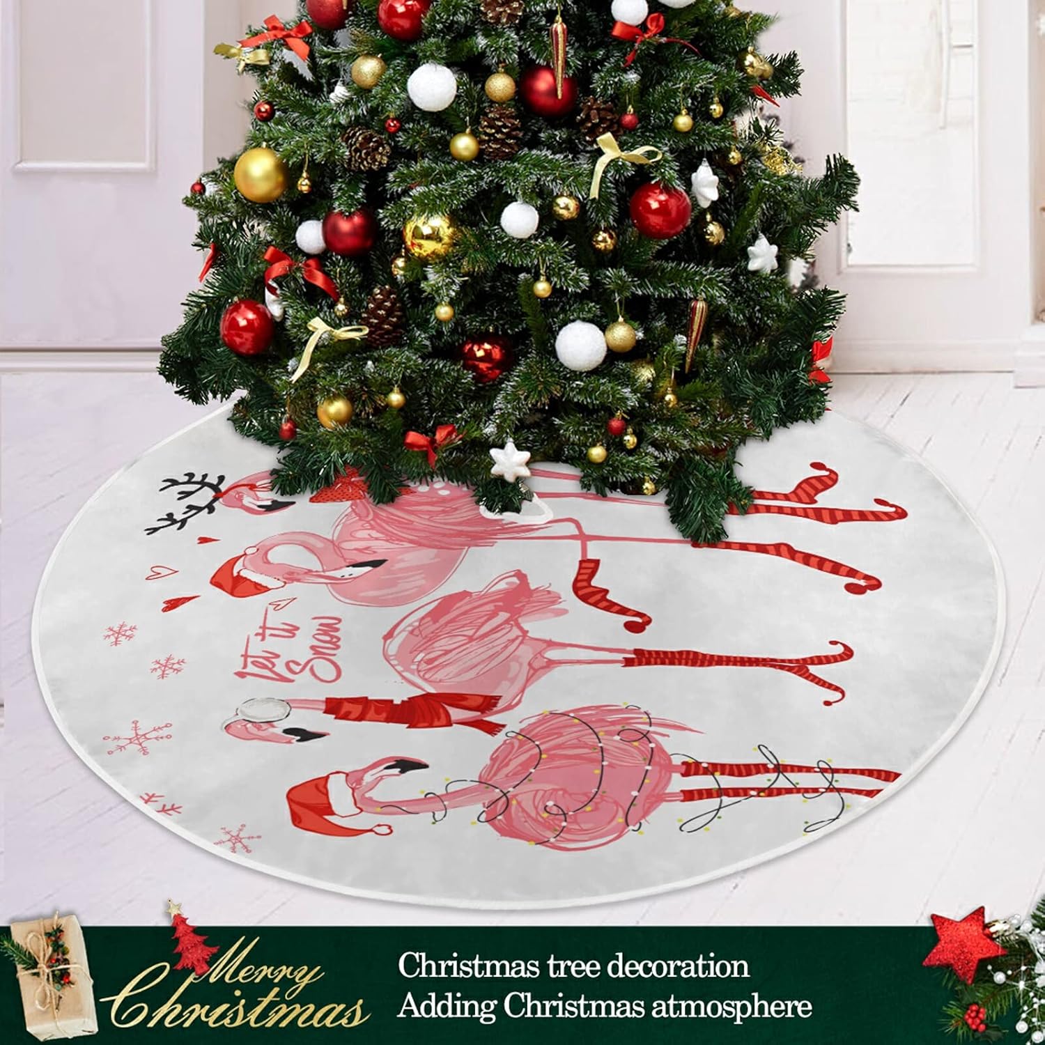 Christmas Pink Flamingo Snowflake Tree Skirt, Seasonal Tree Mat Holiday Party Supplies Ornaments Indoor Outdoor Decorations for Tabletop Trees 47.2 Inches