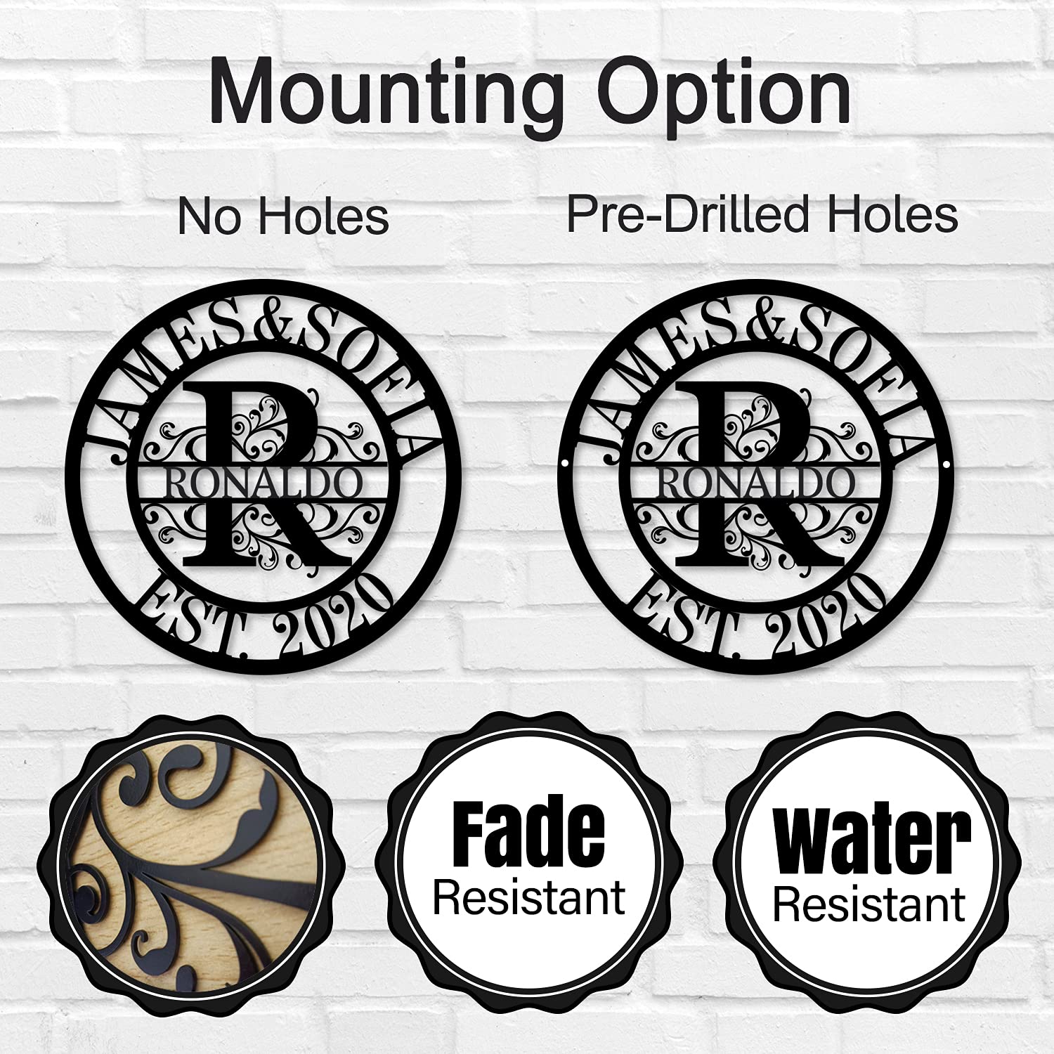 - Wide Application: The last name sign is perfect for indoor and outdoor decoration. Place in your entryway, front porch, patio, or any special location where this wonderful piece will be enjoyed.We will give you two screws for free, put this product on your doorway or wall within minutes!