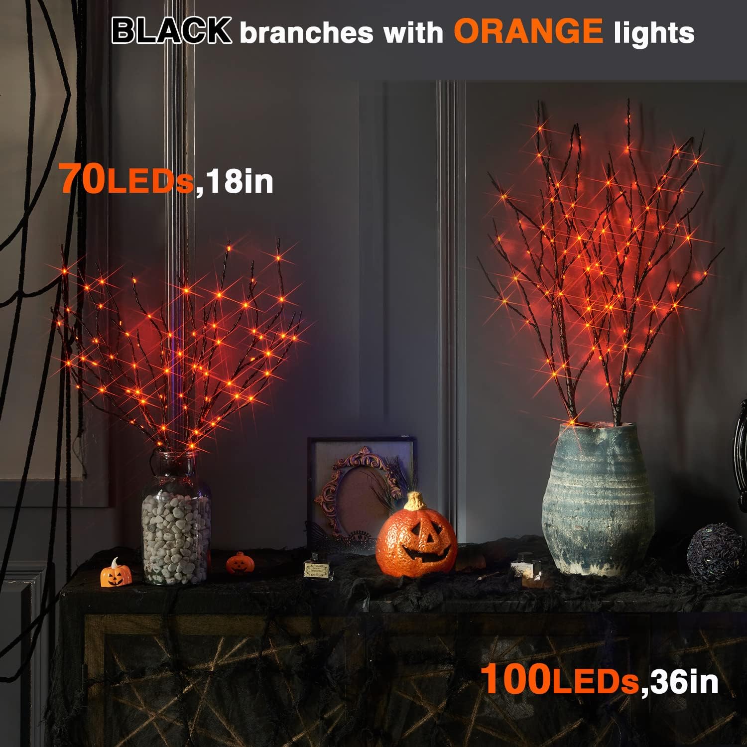 - 🎃 HALLOWEEN DECOR: 2024 NEW designed LED black Halloween branches,glow with 100L orange fairy lights, is a great decoration for Halloween party.