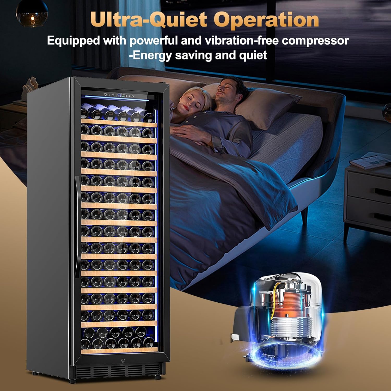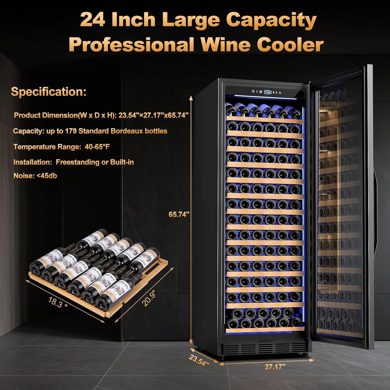 24 Inch Wine Cooler Refrigerator,179 Bottles Wine Fridge Large Capacity Professional Wine Cellars with Powerful Compressor,Quiet Operation and Elegant Design, Black