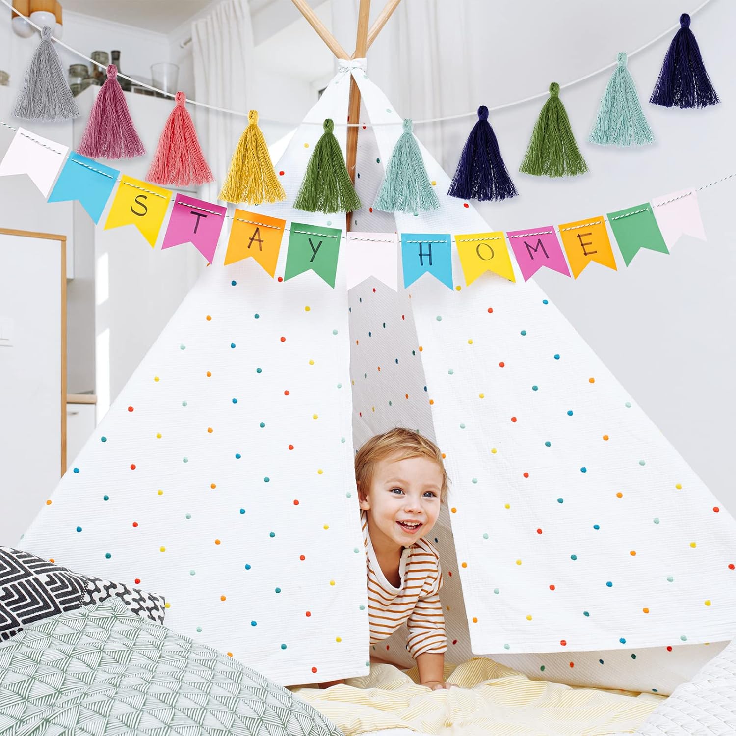 - Where to apply: these adorable and charming tassel garlands can be applied for embellishing homes, walls, windows, fireplace, door or beds; They are also appropriate for weddings, bridal showers, baby showers, birthday parties and classrooms, bright and colorful, giving you and your friends an unforgettable and cherished memory