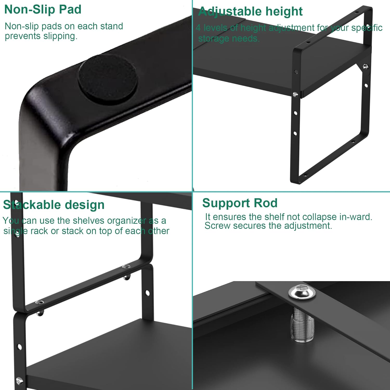 - 【Multifunctional storage】--This shelf will double your space! It can be used in various places in your home, including kitchen cabinets, desks, pantry, bathroom cabinets, closets, countertops, under the sink or any place that needs extra space to maximize storage and organization.