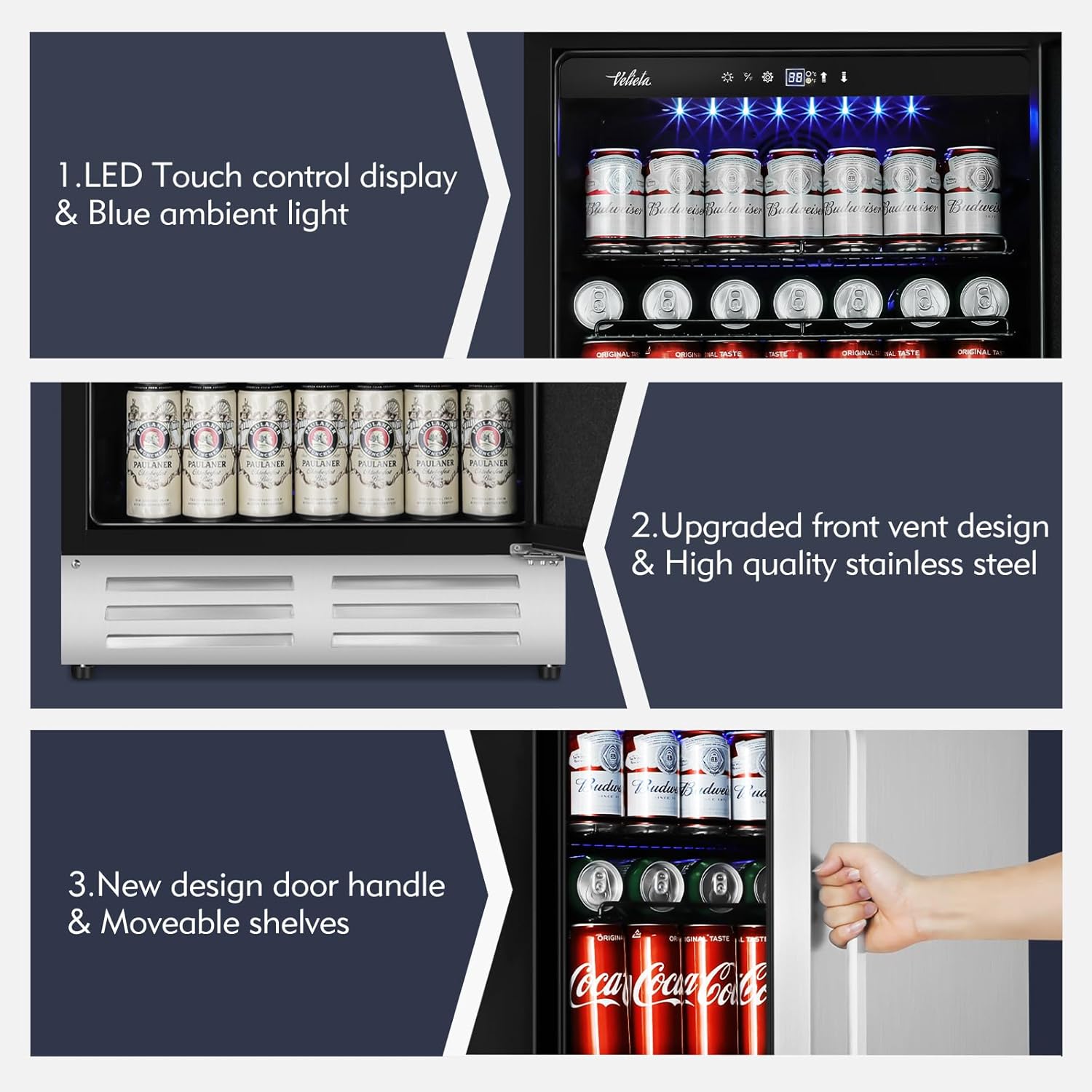 - 【Under counter built-in/Freestanding】Velieta beverage refrigerator has the design of the front vent, you can install it directly under the Counter or freestanding. It can perfectly fit for 24inch space to be built-in. You can adjust the level and height of the refrigerator Via the Bottom feet.