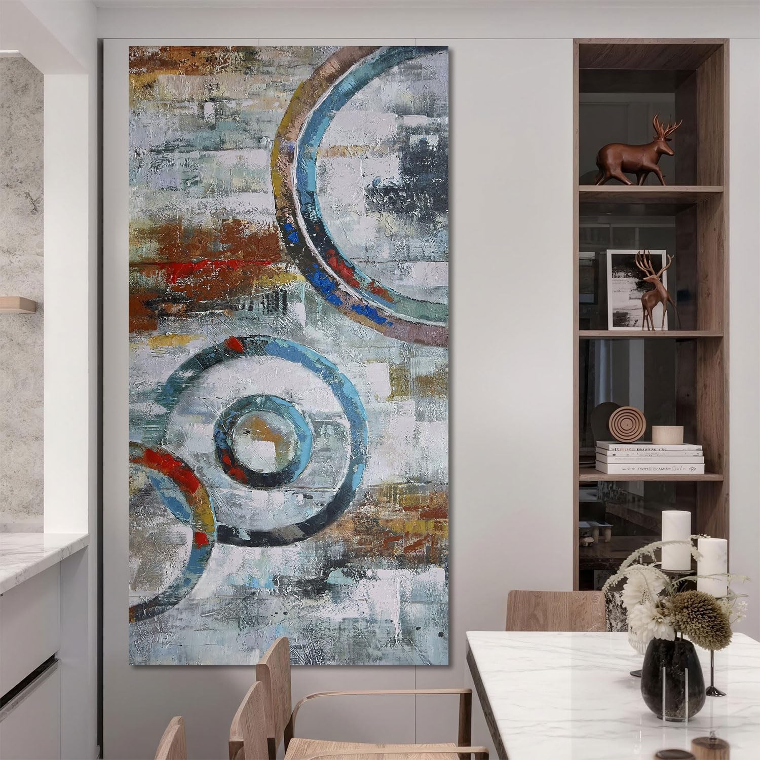 - Abstract wall art size: 58inx29in(147cmx74cm) gallery wrapped, it's our original design with hand-painted textured. The vibrant colors and intricate details of this piece will bring a sense of tranquility and peace to any room