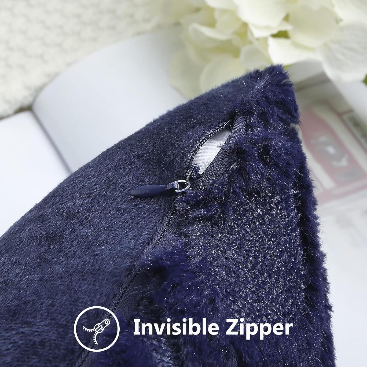 decorUhome Fall Throw Pillow Covers 26x26 Inch Set of 2, Soft Plush Decorative Faux Fur Navy Blue Solid Couch Pillow Covers, Accent Farmhouse Neutral Square Euro Pillow Cases for Sofa Bed Living Room