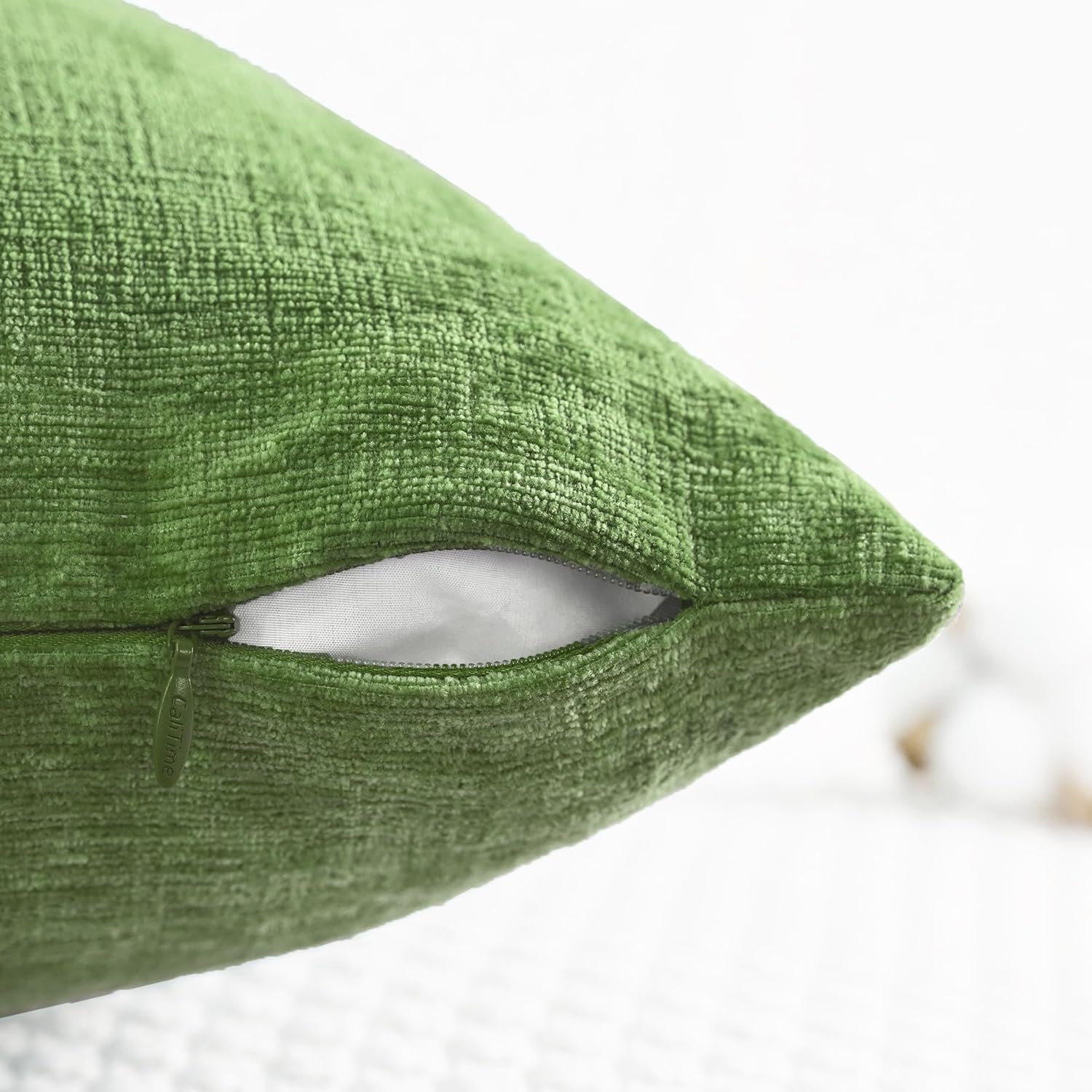 CaliTime Throw Pillow Covers Decorative 24 X 24 Inches Pack of 2 Cozy Chenille Cushion Cases for Couch Sofa Bed Living Room Home Forest Green