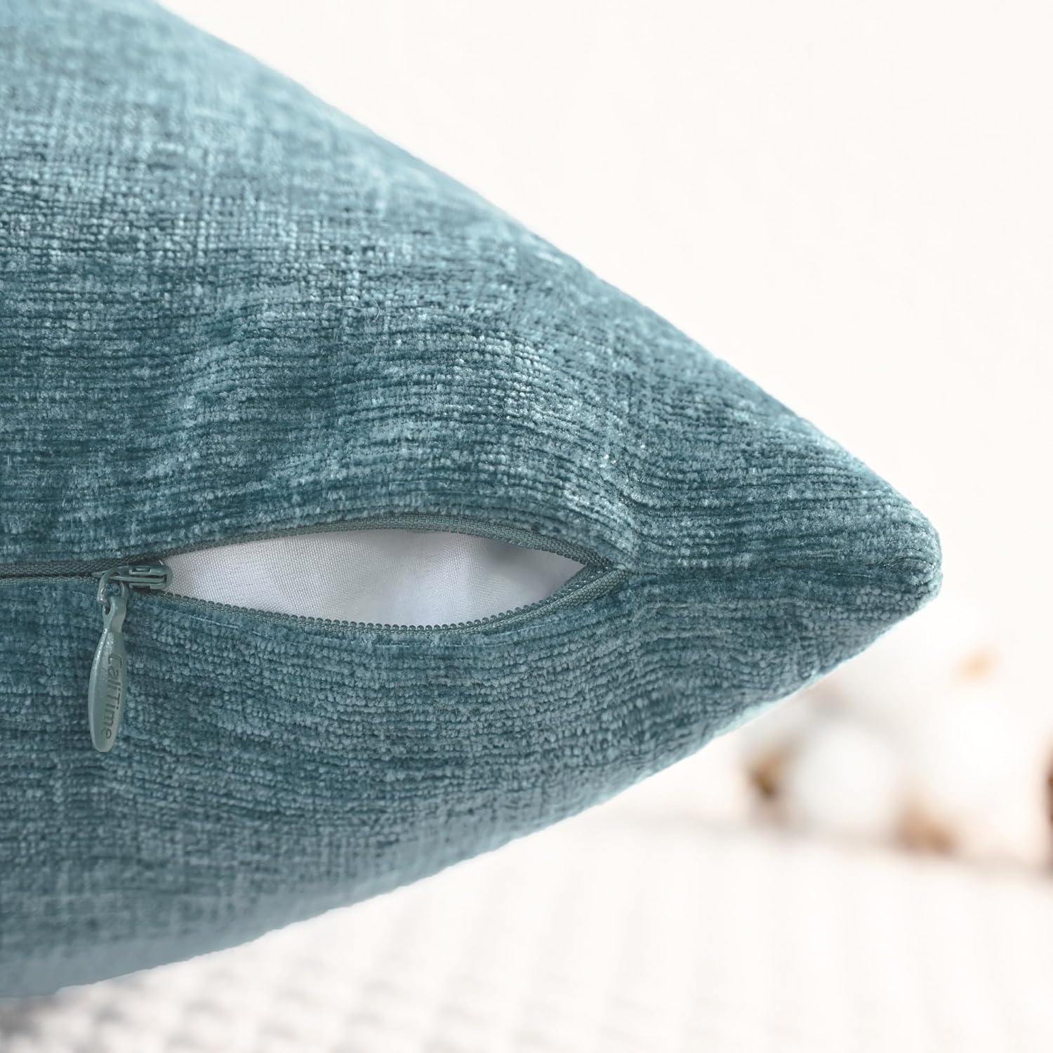 CaliTime Throw Pillow Covers Decorative 24 X 24 Inches Pack of 2 Cozy Chenille Cushion Cases for Couch Sofa Bed Living Room Home Smoke Blue