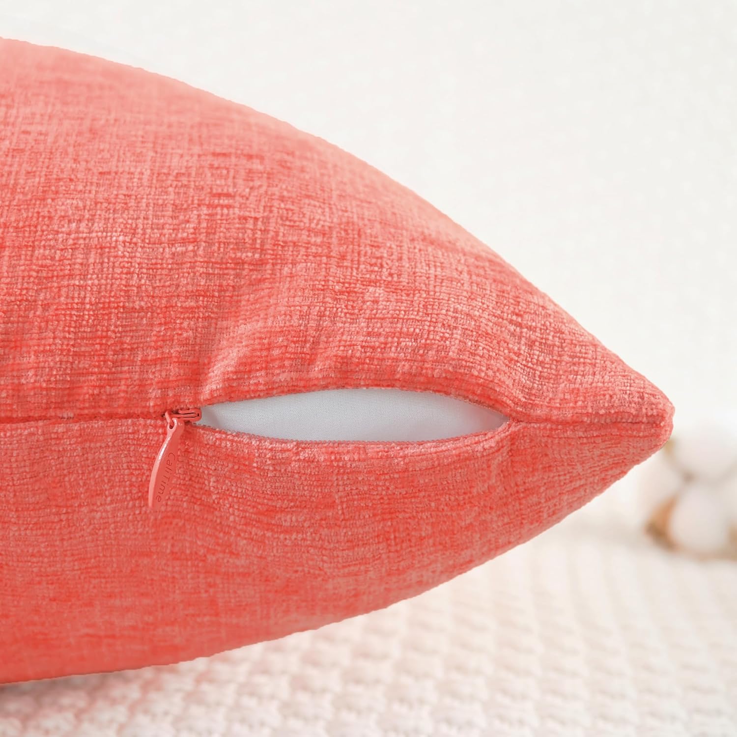CaliTime Throw Pillow Covers Decorative 24 X 24 Inches Pack of 2 Cozy Chenille Cushion Cases for Couch Sofa Bed Living Room Home Living Coral