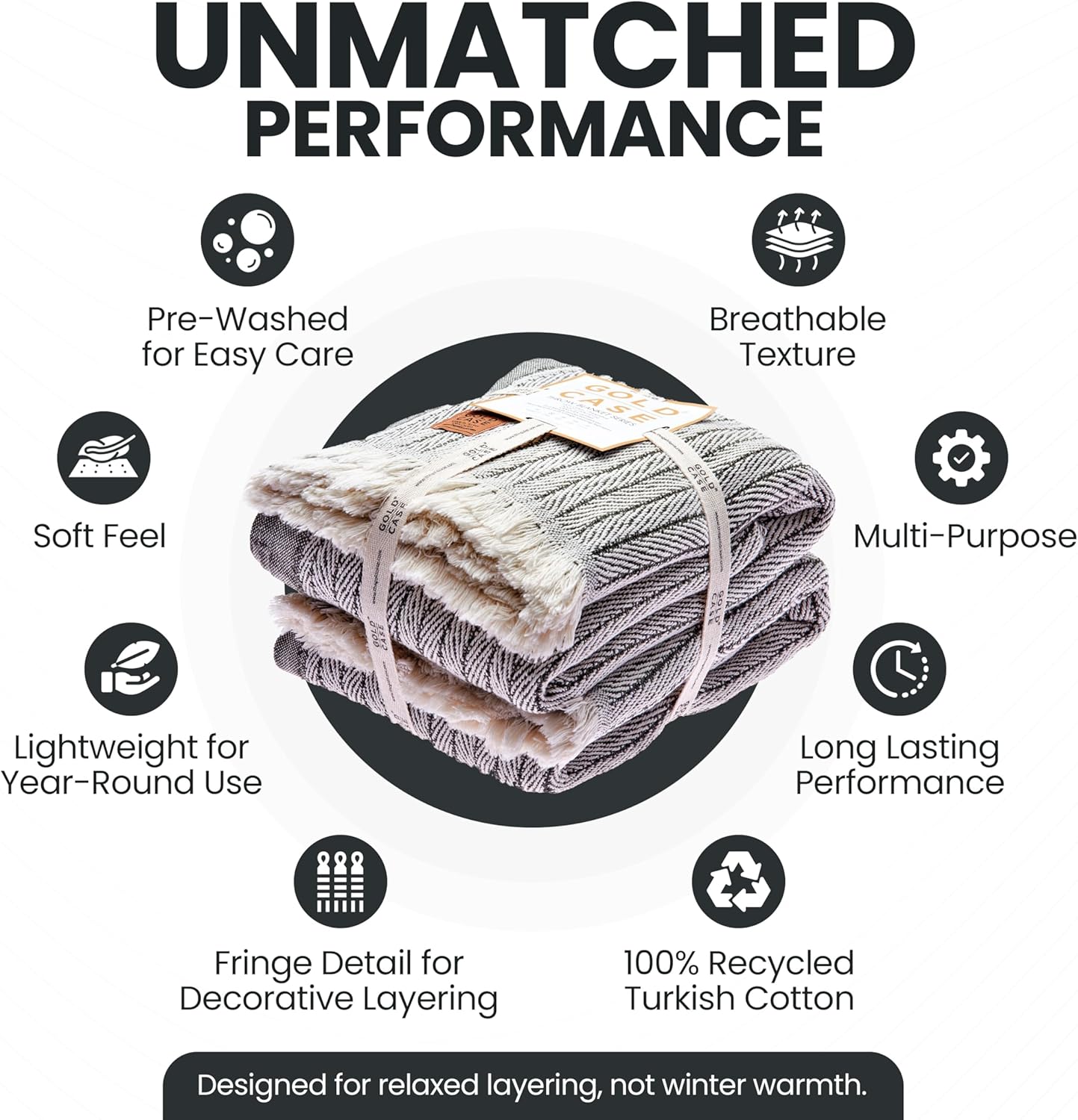 - CELEBRATE SUSTAINABLE STYLE: Made in Turkiye with recycled cotton, this couch throw blanket brings eco-conscious comfort to your home; the soft weave and fringe detail give this couch blanket a rustic, decorative touch that layers beautifully in any space