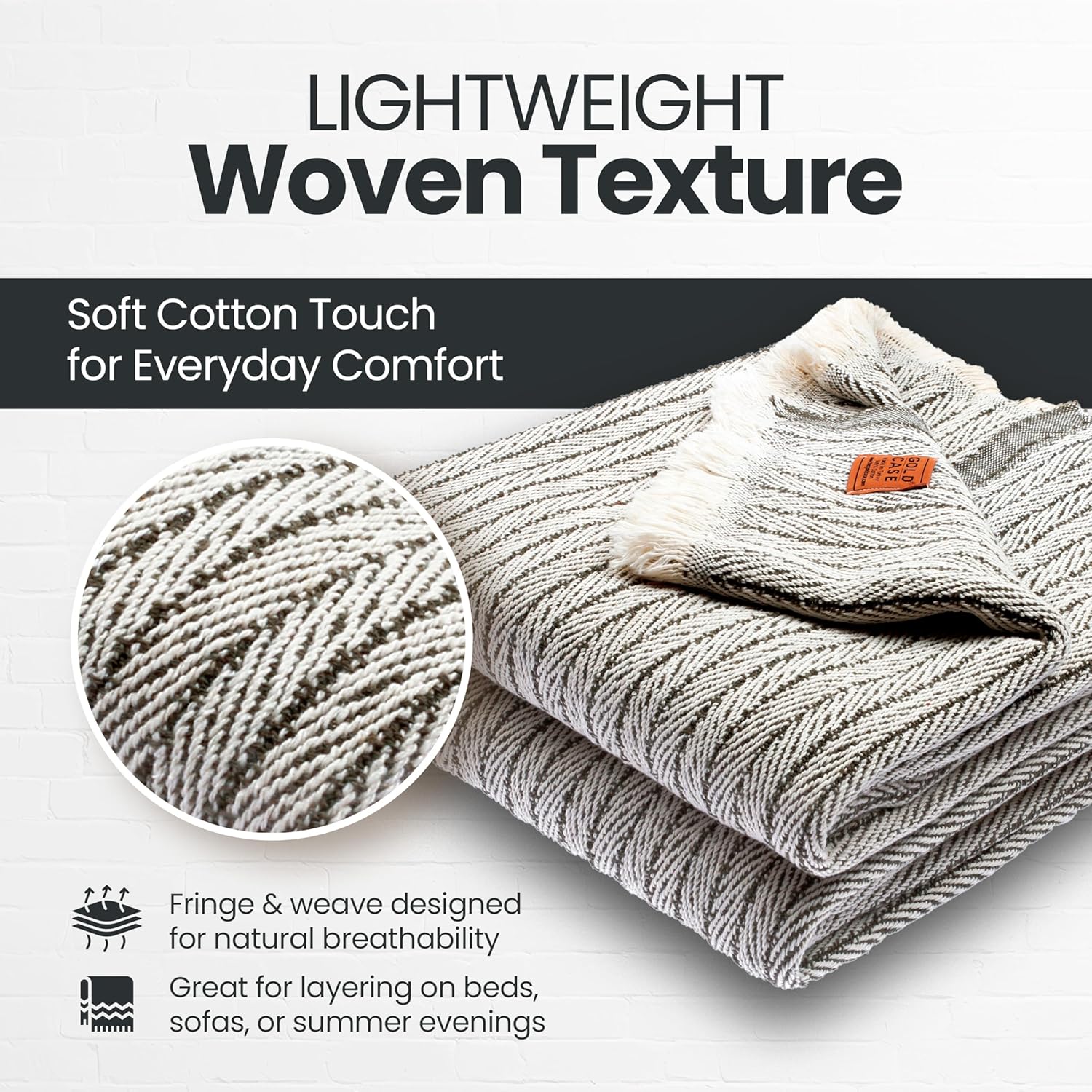 - LIGHTWEIGHT LAYERS FOR RELAXED MOMENTS: Woven from 100% recycled Turkish cotton, this breathable and cute throw blanket adds a soft, textured touch to your space; made for layering on the couch, tossing over your shoulders, or adding a laid-back look to your decor