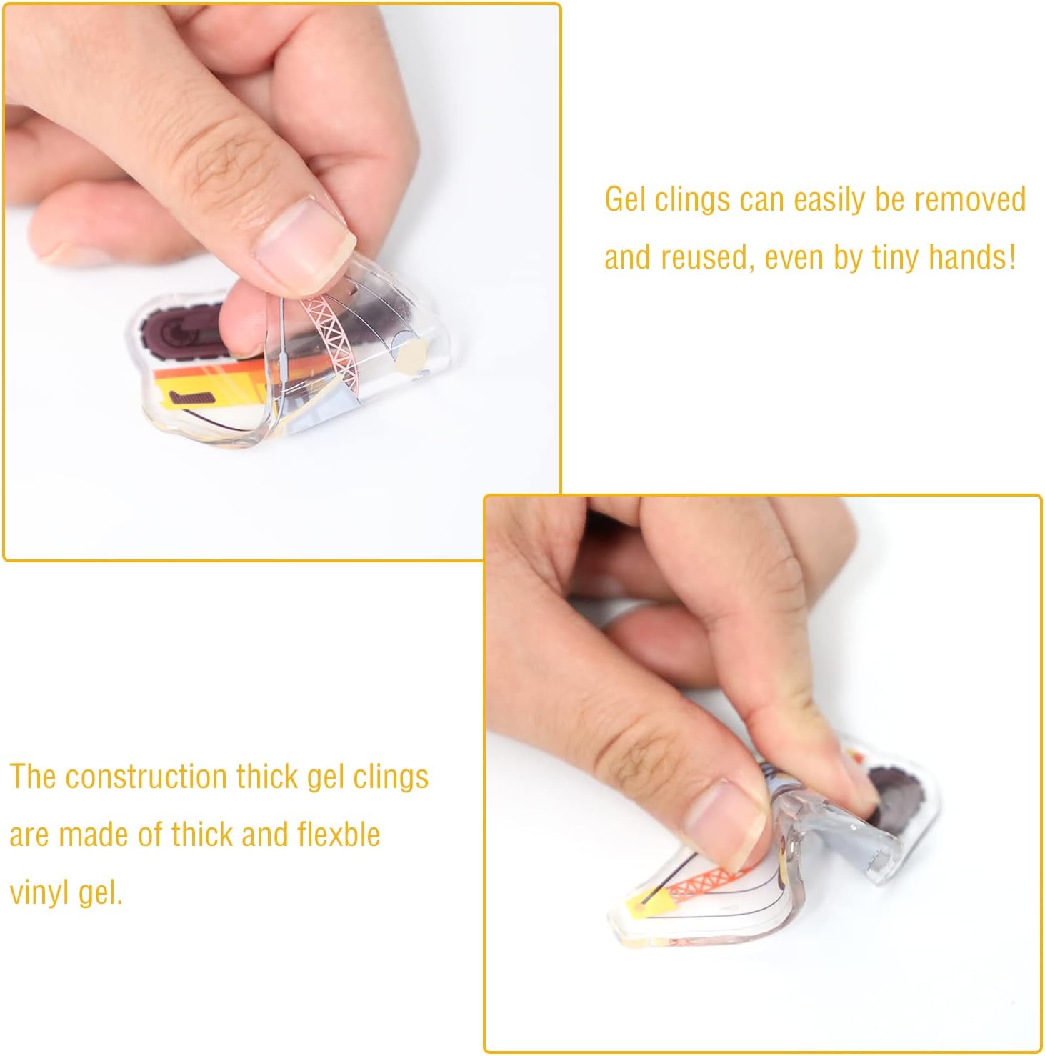 - Removable and reusable: the construction thick gel window clings are vinyl gel clings which can easily be removed and applied for a long time, even by tiny hands, you can remove these thick gel clings anytime and reuse them year after year, they don't leave any residue on the glass