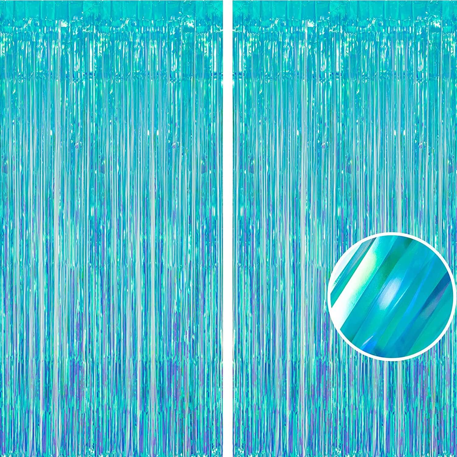 BRAVESHINE Party Decorations Iridescent Foil Fringe Backdrop - 2 Packs 3.2 x 6.5 ft Holographic Tinsel Backdrop Party Streamers Curtain for Birthdays Mermaid Sea Frozen Christmas Parties - Clear Blue