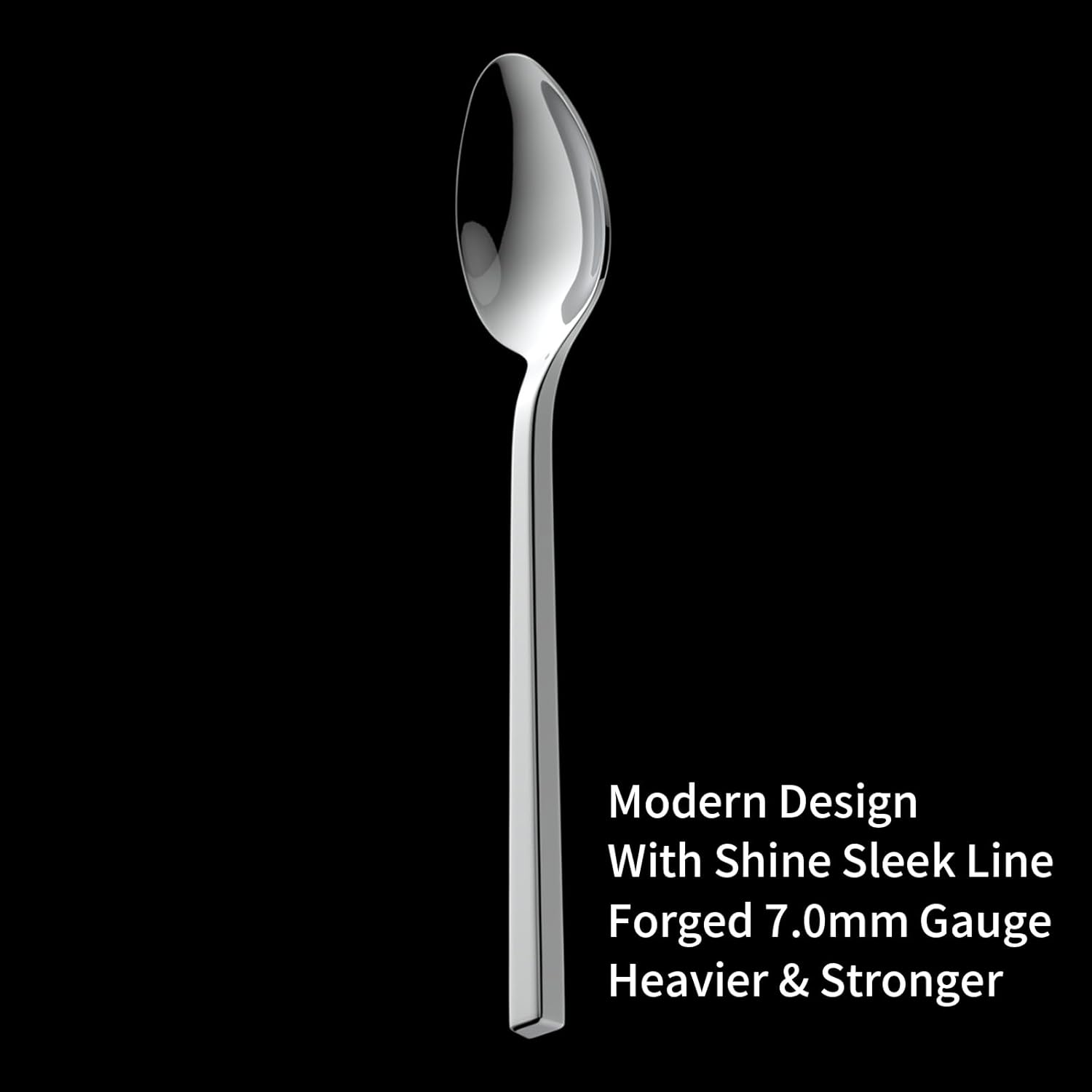 - DESIGN AND APPEARANCE: Classic square handle shape with mirror finish, natural and elegant design.Smooth and silk surface without grain, easy to clean and care in daily use. Crafted forged process, strong and durable,so that the flatware set has a thicker texture