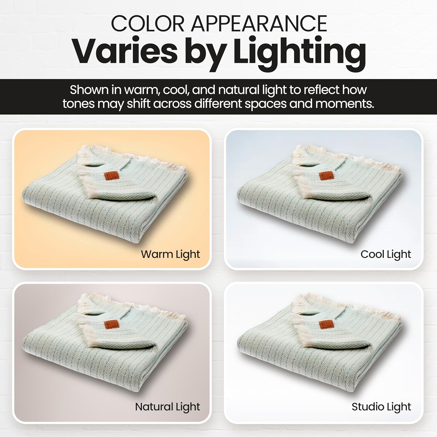 - LIGHTWEIGHT LAYERS FOR RELAXED MOMENTS: Woven from 100% recycled Turkish cotton, this breathable and cute throw blanket adds a soft, textured touch to your space; made for layering on the couch, tossing over your shoulders, or adding a laid-back look to your decor