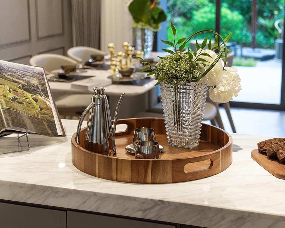 - Color : 15.75"+13.78" Round Tray - Acacia