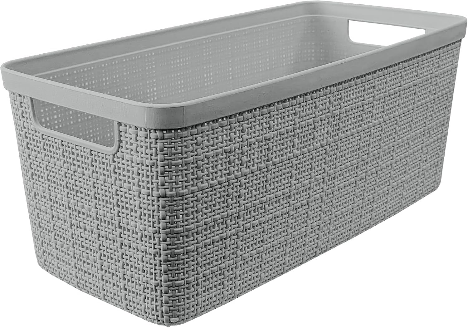 Curver Jute Decorative Plastic Organization and Storage Basket Perfect Bins for Home Office, Closet Shelves, Kitchen Pantry and All Bedroom Essentials, Set of 8 Grey