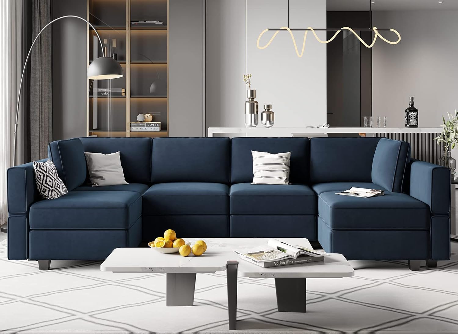 Belffin Modular Reversible Sectional Sofa U Shaped Couch with Storage Seat with Chaise Velvet Blue…